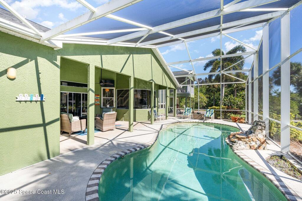Direct river access. 3 car garage Home located on .35 acre, close to area of new custom homes. Masterfully renovated 5 bedroom, 3 full baths, plus half pool bath. 5th bedroom, ideal for office, hobby room or guest quarters with private entrance located off garage. Dedicated Master suite is upstairs. Porcelain tile flooring replaced on 1st level. Both downstairs bathrooms renovated. Custom eat in kitchen with granite counters. Family room with dramatic coquina fireplace. Formal dining room, living room, screened pool with waterfall. Upstairs Master suite with screened patio overlooking canal. Updated electrical panel & A/C compressor downstairs. Wood decking, dock & boat lift, lift max. 3,000 lbs.. No HOA