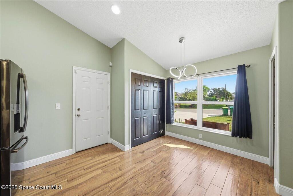 Welcome to 6424 Muller Ave in Cocoa! This beautifully maintained concrete block 3-bedroom, 2-bath home was built in 2015 and offers the comfort of newer construction with thoughtful upgrades. Features include new flooring, fresh interior paint, and vaulted ceilings in the kitchen and living area for an open, airy feel. The split floor plan provides added privacy for the primary suite, while the kitchen and bathrooms were upgraded in 2022 with granite countertops, updated paint, and a new washer and dryer. Enjoy peace of mind with triple-pane hurricane-impact windows, a septic tank serviced in summer 2022, and an exterior recently pressure-washed. The large fenced backyard offers plenty of room for kids, pets, and entertaining. A Ring camera security system is included. Located in a quiet neighborhood with no HOA, just 40 minutes from Orlando Airport, theme parks, and minutes to the beach!
