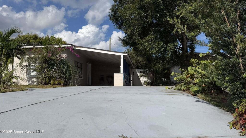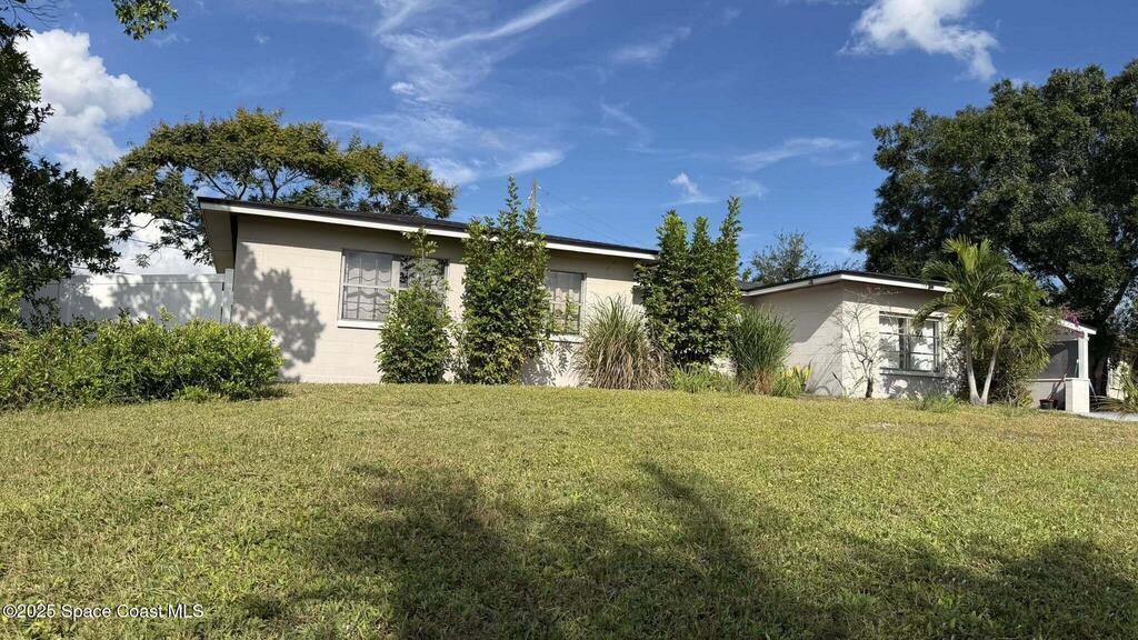 Seller motivated!!! Beautiful concrete block home on a spacious .28 corner lot located near the Melbourne Airport, beaches, and the vibrant Arts District. This property offers a an open carport, and a freshly updated bathrooms. Two driveways provide ample parking space, making it convenient for you and your guests. The fenced-in backyard offers plenty of room for outdoor activities, gardening, or simply enjoying the open space. Natural light fills the home through modern windows and a skylight, creating a bright and welcoming atmosphere. Surrounded by greenery in a peaceful, quiet location, this home is ideal for comfortable Florida living with easy access to shops, dining, and entertainment
