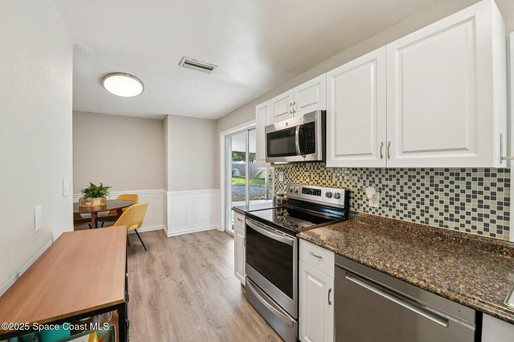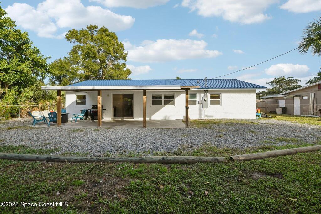 Beautifully updated Merritt Island home featuring a brand-new metal roof (2025) and freshly painted. The home offers an upgraded kitchen with modern appliances, 2020 window updates, and a 2020 electric panel for added reliability. Exterior features include a covered terrace, paver patio, and a paver driveway (3 years old) with an additional driveway on the opposite side. Property provides on-premises parking for up to 6 vehicles, plus corner space ideal for boats, RVs, or motorhomes. City water and no HOA. Excellent location just 10 minutes to Cocoa Beach, 45 minutes to Disney, and zoned for top-rated Edgewood Jr/Sr High (#9 in Florida). Move-in ready and close to shopping, Port Canaveral, and Space Coast attractions.
