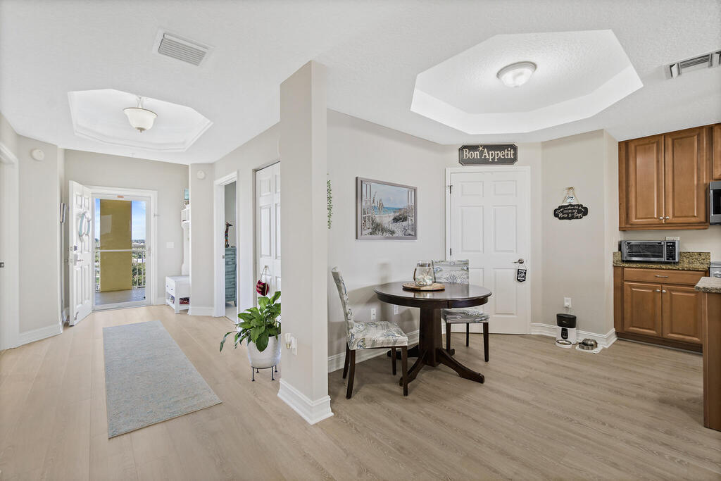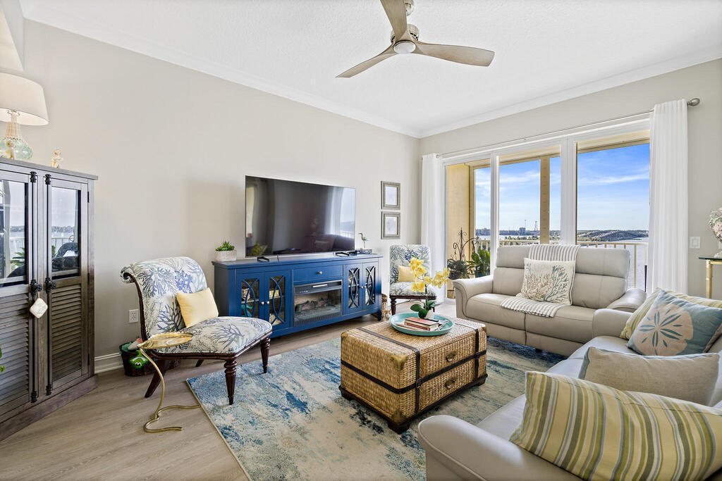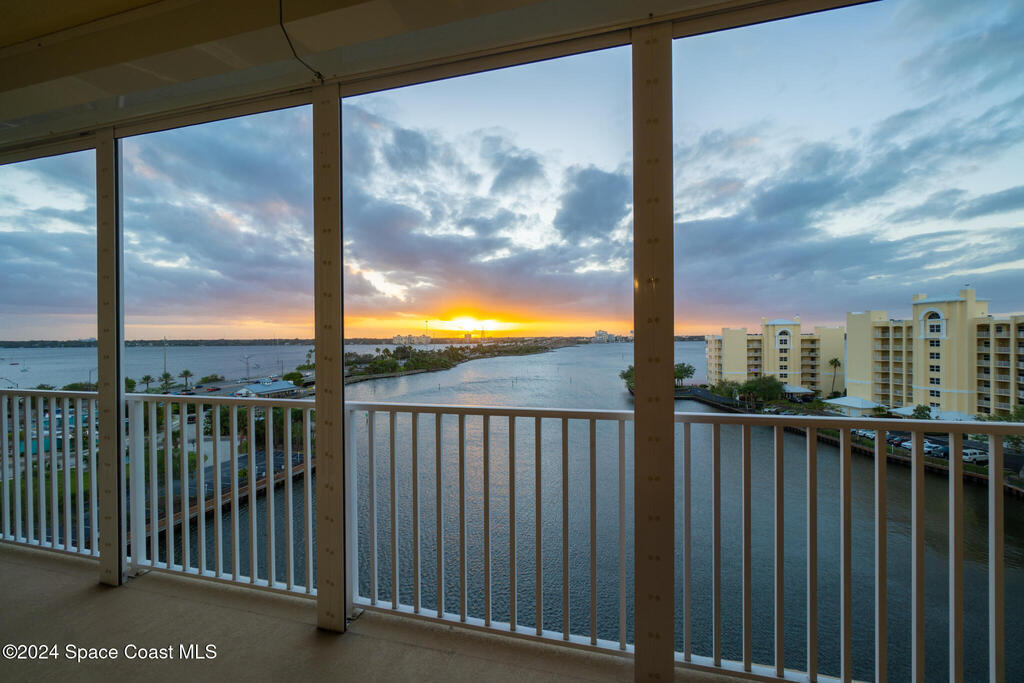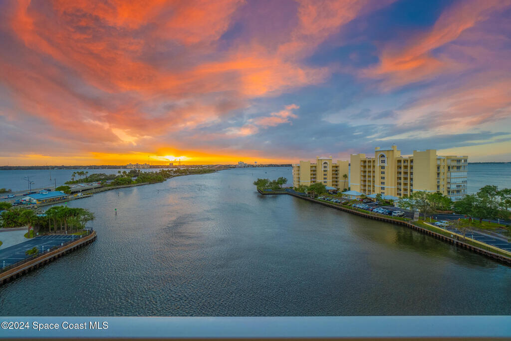 Enjoy breathtaking sunrises and endless Indian River views from this 7th-floor 3-bedroom, 2-bath condo in Island Pointe. The updated kitchen offers granite countertops, new Bosch stainless-steel appliances, a walk-in pantry, and a large island ideal for cooking and entertaining. Natural light fills the open floor plan through the balcony sliders. A versatile bonus room can be used as an office, den, or dining area. The spacious primary suite features his-and-her closets and a relaxing bath with dual sinks and a jetted tub. A private garage near the building entrance adds convenience. Watch ships and rocket launches from your balcony! Resort-style amenities include two heated pools, spas, a sauna, fitness center, clubhouse, and tennis and basketball courts. Conveniently located near Cocoa Village, beaches, Port Canaveral, and Merritt Square Mall. Milestone & SIRS complete--no assessment! Schedule your private showing today!