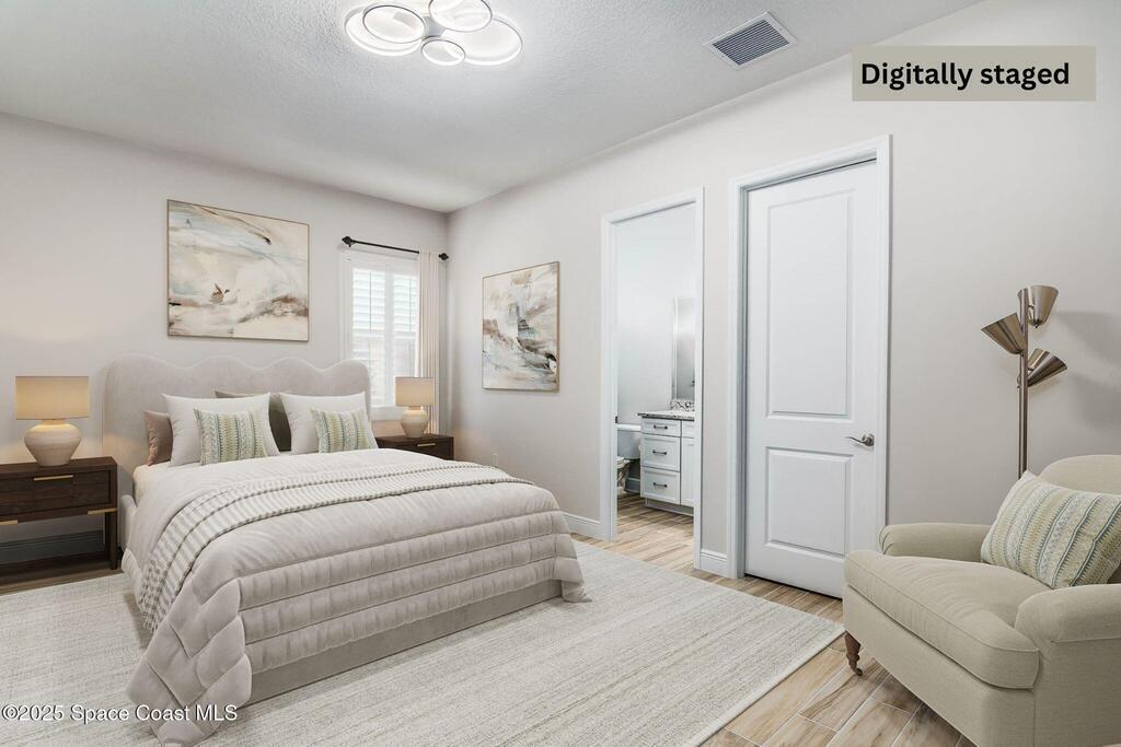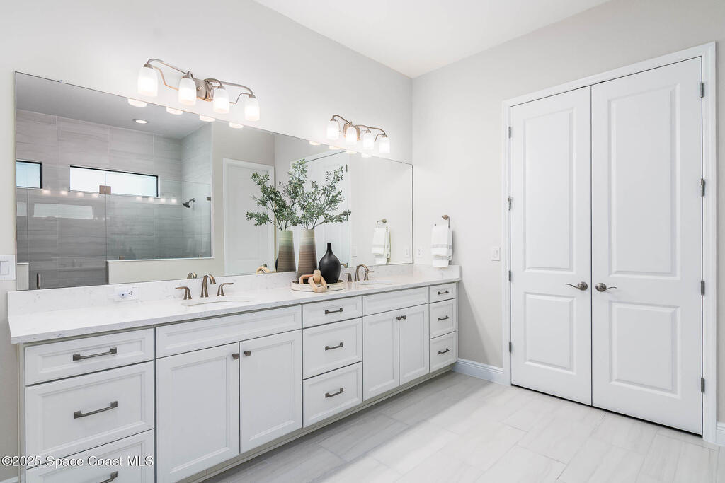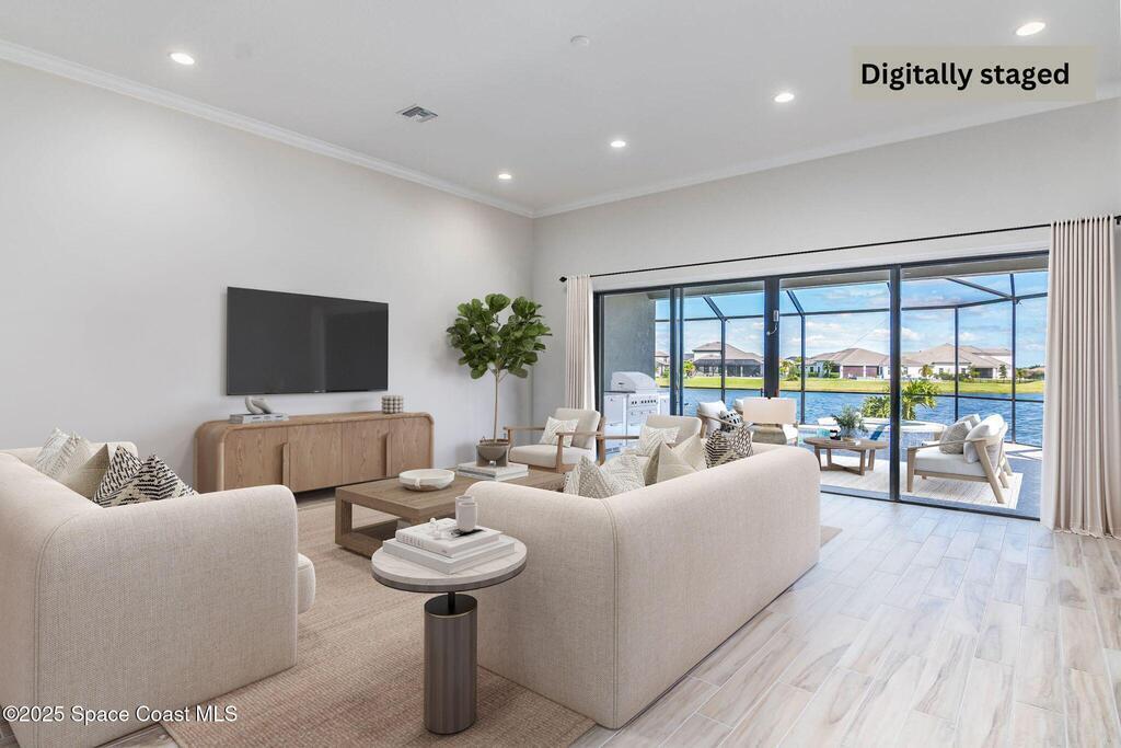 A new standard in Viera living! This home outshines new builds w/ customizations the builder no longer offers. Set on a quiet cul-de-sac, this 0.27-acre lakefront lot boasts an oversized front yard & extended tranquil water views. Enjoy a pool & spa from the supersized lanai, pre-plumbed for an outdoor kitchen. The gourmet kitchen is a chef's delight w/ wall ovens, gas cooktop, wine fridge, & a power pantry w/ 2nd refrigerator, dishwasher & sink. Upgrades include 3 HVAC zones for ultimate comfort, built-in wall pest defense & smart features like WiFi cameras, thermostats & garage door. Wood-look tile, tray ceilings & plantation shutters on impact windows add elegance. Every bdrm + bonus rm have a private bath & the owners' ste offers an oversized walk-in closet, large linen closet & dual showers. Set in an A-rated school district near top dining, golf, shops & just 15 min. to the beach. Here modern comfort & a remarkable lakeside setting blend to create the perfect place to come home!