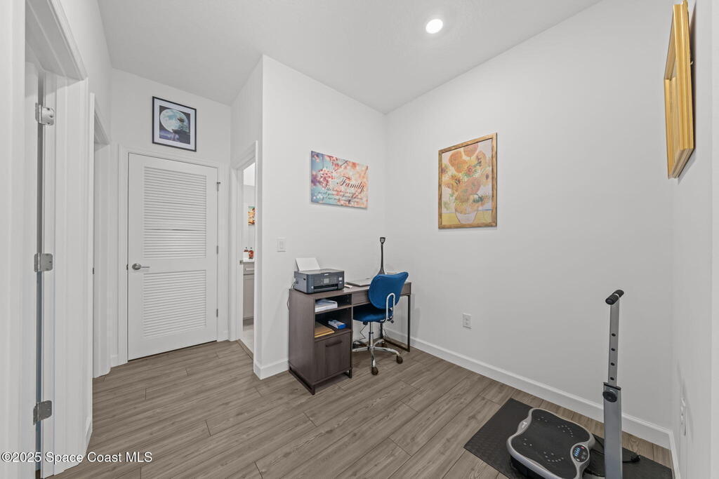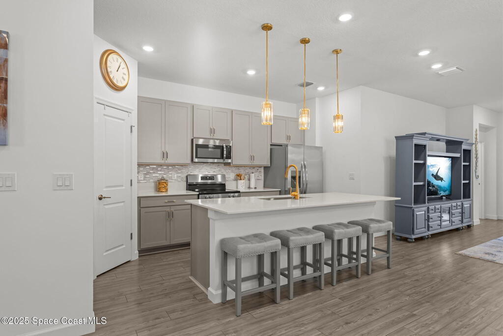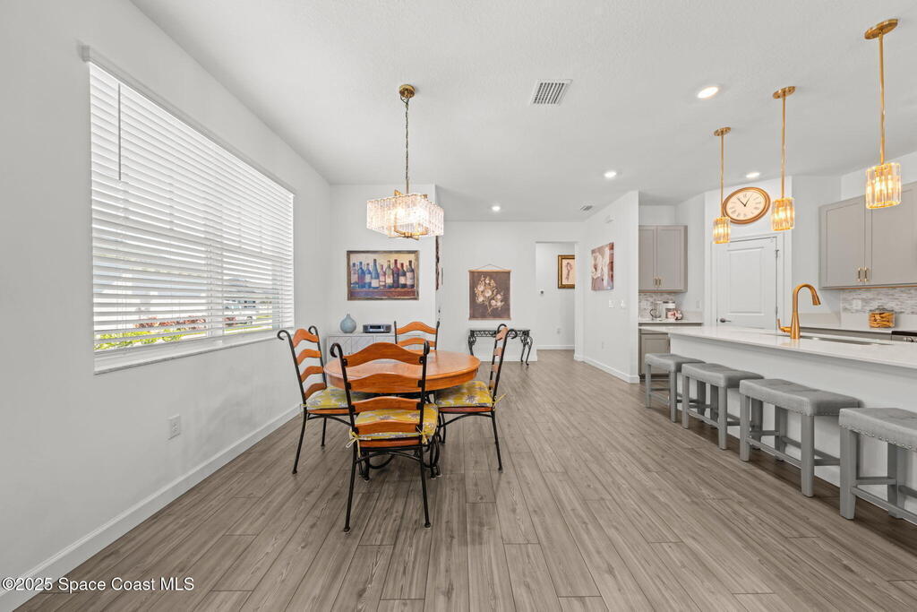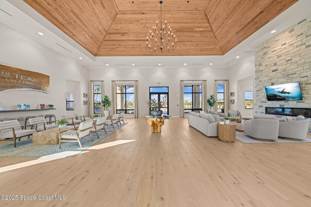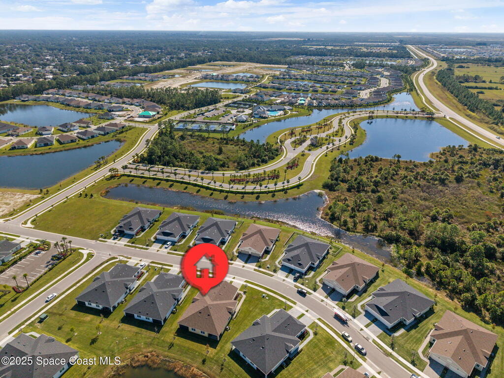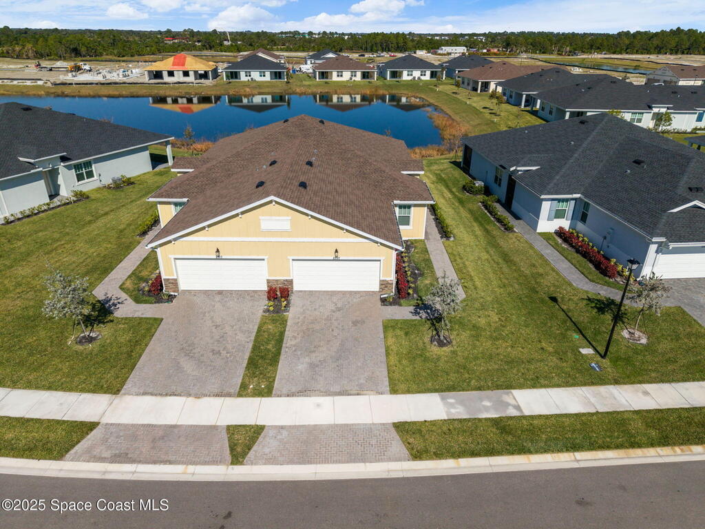 LIKE BRAND NEW, less than one year old, 1794 sq ft, 3 bedroom plus flex area, 2 bath, 2 car garage home in The Timbers at Everland, the sought after 55+ resort style community in Northwest Palm Bay! This 2024 built meticulous home backs up to a WIDE, GORGEOUS LAKE! The beautiful half duplex style home offers great north views of the lake from the added screened porch! This home includes IMPACT WINDOWS and SLIDER, which make hurricane season stress free! Must have features including beautiful gray kitchen cabinets with gorgeous quartz counters, quality luxury vinyl plank throughout, and window blinds throughout are included in this beautiful home! Unwind at the brand new private clubhouse, featuring a large heated pool and spa, fitness room, aerobics studio, card room, dog park, putting green, fishing dock, tennis and pickle ball courts, bocce, and even a movie theater! And the HOA covers your home's lawn care! Short car ride to the City of Melbourne and plenty of shopping and dining!