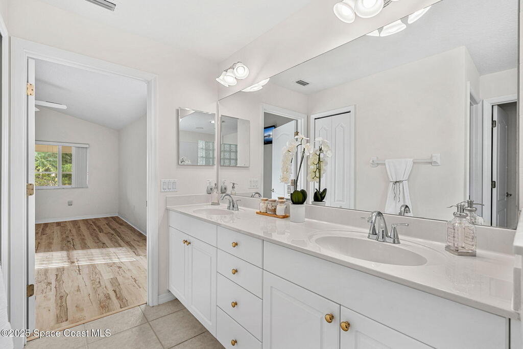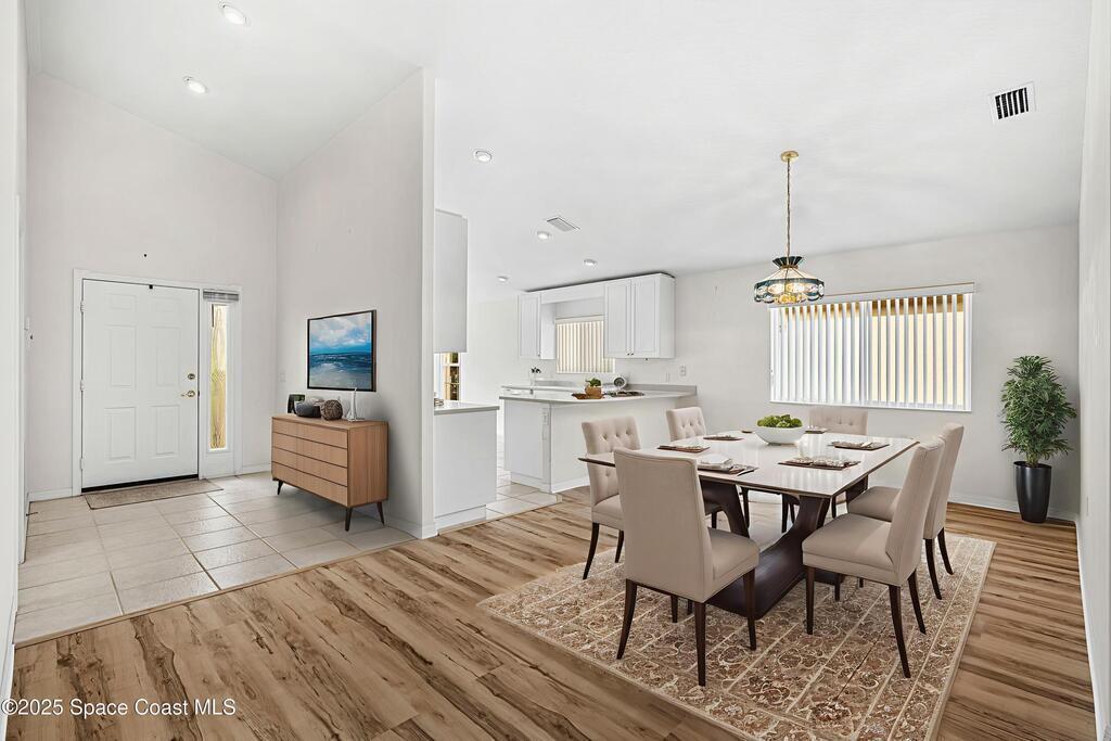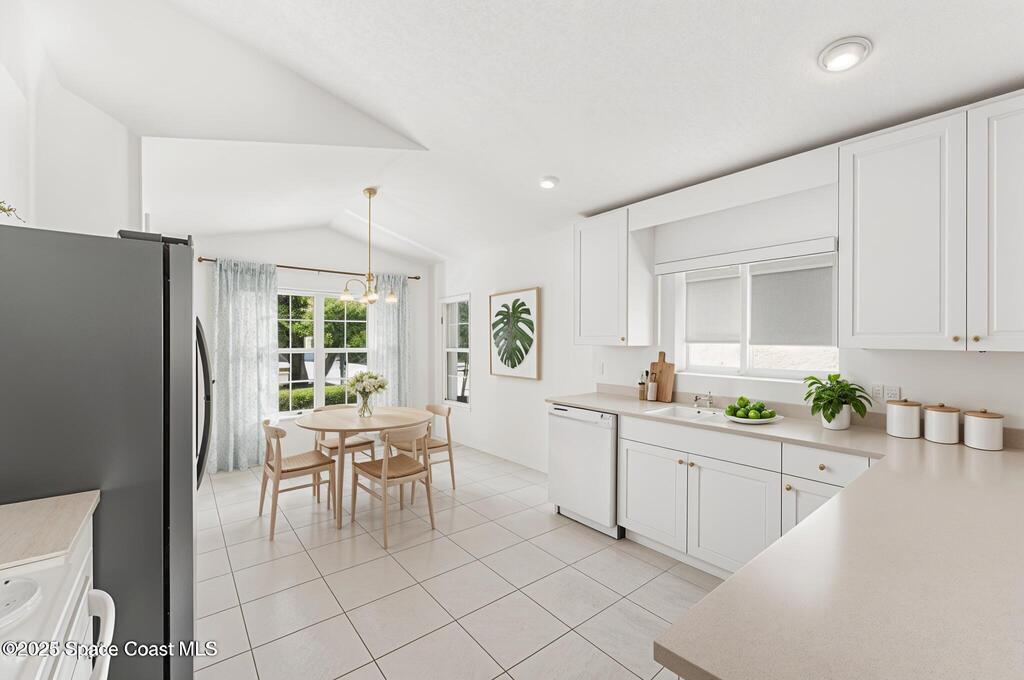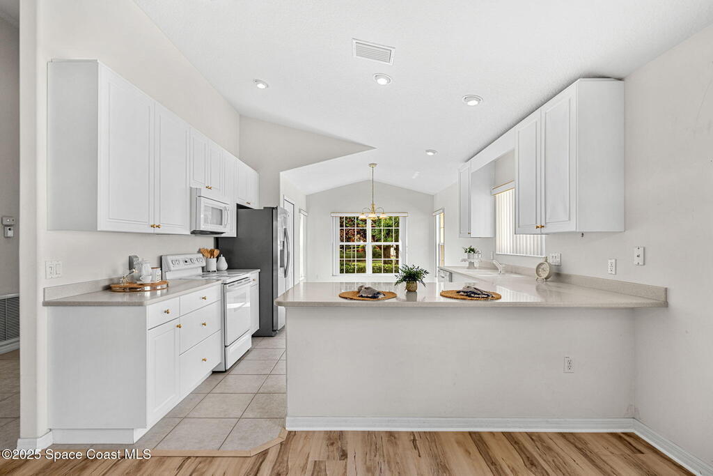 Looking for a low maintenance living in an Active Adult Gated community? Then Pine Creek is the place for you! Conveniently located in the heart of Melbourne, this 3BD/2BA home offers stunning curb appeal with a paver driveway & manicured landscaping. Inside, vaulted ceilings enhance the light-filled spaces. The eat-in kitchen features white cabinetry, Corian countertops & a breakfast bar, while the spacious primary suite includes a large walk-in closet, dual sinks & walk-in shower. Enjoy the sunroom flooded with natural light, plus the convenience of a laundry room w/ utility sink. Peace of mind comes w/ accordion shutters, Brand New LVP flooring in 10/2025, a 2021 roof & 2020 HVAC. Community amenities include a clubhouse, pool, spa, fitness room, weekly activities & social gatherings. The well-run HOA ($836/quarter) covers cable, internet, lawn care, sprinkler maintenance & exterior painting every 8 years. Close to shopping, dining, golf, tennis & the beaches!