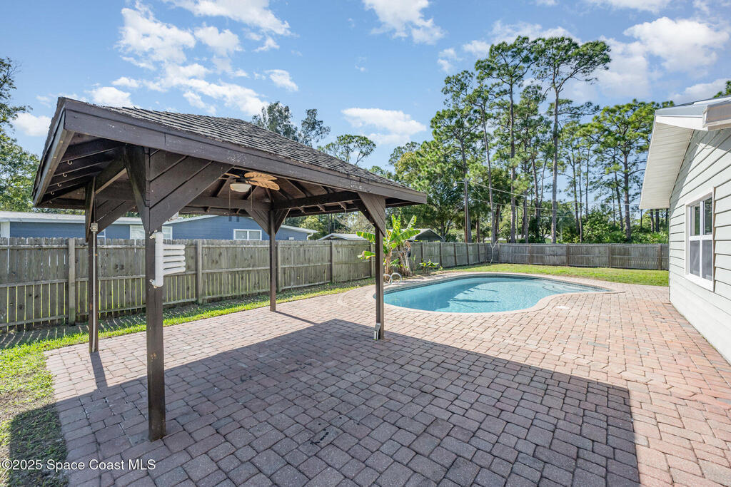 Freedom on the corner! This beautifully remodeled, move-in-ready 3BR/2BA/2-car garage pool home sits on a sprawling .85-acre corner lot, offering space, privacy, and room to roam. Inside, enjoy an inviting open floorplan and an upgraded kitchen with granite counters, stainless appliances, and extended cabinetry. The spacious primary suite features an oversized walk-in closet, private pool access, double vanities, and a tiled walk-in shower with dual shower heads. Step outside to a fenced backyard with a large concrete pool and a charming gazebo with electric--perfect for relaxing or entertaining. Enjoy being close to everything but having room to for RVs, boats, jet skis, and all your toys. Updates include: Metal Roof (2023), Septic (2015), AC (2019), Water Heater (2019), Pool Pump & Vacuum (2022), Well & Well Pump (2017).