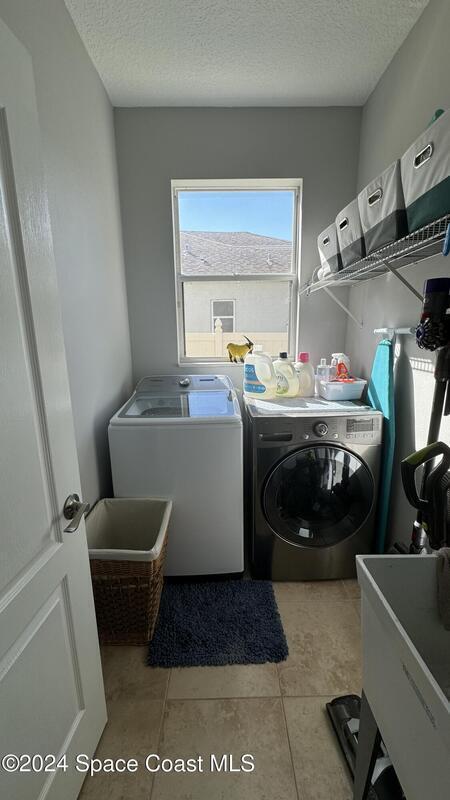 Welcome to this stunning 5-bedroom, 3.5-bathroom home located in the desirable gated Tamarind Estates community in Melbourne, FL. This 2-story single family home features a downstairs master bedroom and bathroom, perfect for convenience and privacy. The spacious kitchen boasts stainless steel appliances and upgraded finishes, while the separate dining and living rooms provide ample space for entertaining. Enjoy the luxury of tile flooring throughout and carpet in bedrooms for comfort, as well as a master bathroom with double sink, and a separate shower and garden tub. With an inside separate laundry room, paver driveway, fenced backyard, and enclosed pool, this home offers everything you need for comfortable and stylish living. LANDSCAPING AND LAWN SERVICE INCLUDED!! Make an appointment today to view this awesome property!