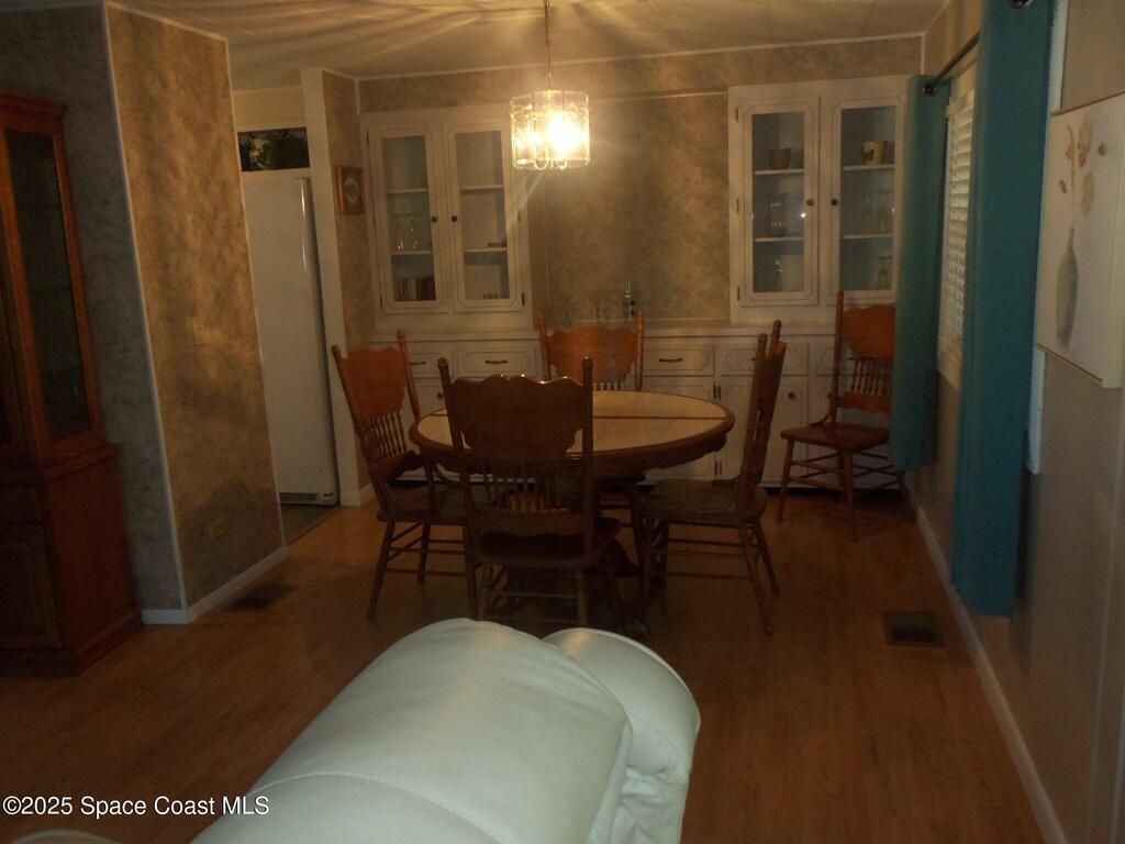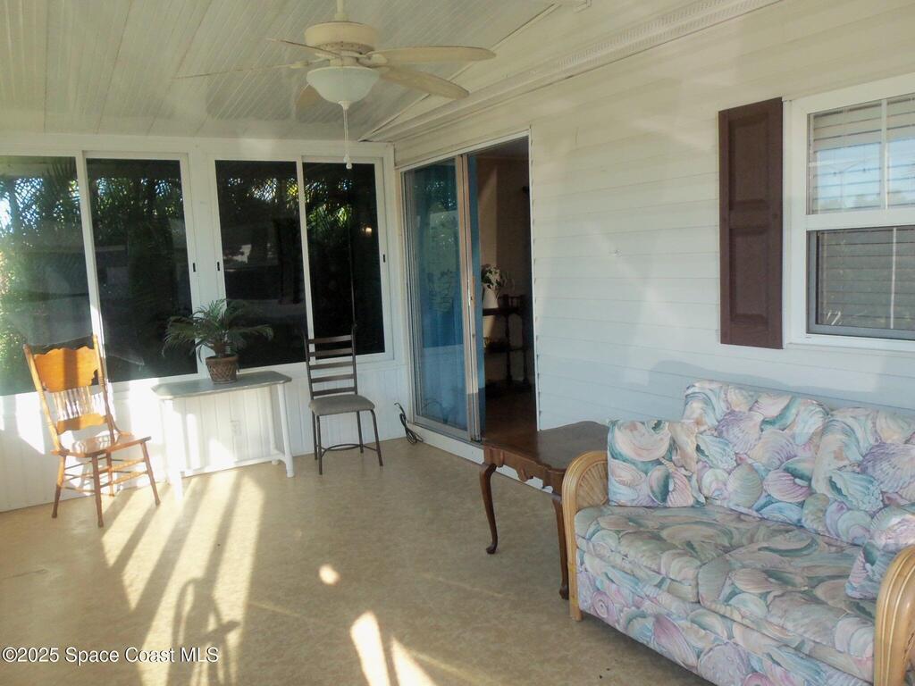 This home is a 1977, 24'x48' home fully furnished with a list of the following pluses:FANS, NEW WINDOWS, LAMINATE FLOORS K/LR/DR/H/MBR, REMODELED KITCHEN AND BATHS, HUGH UTILITY ROOM, MASTER BEDROOM ENTIRE WIDTH OF HOME, FLORIDA ROOM ON FRONT OF HOME FINISHJED, W/WALL A/C UNIT, SCREEN ROOM ON SIDE OF HOME PAINTED, DOUBLE WIDE DRIVEWAY. Come in and see this once in a lifetime home. It's a must-see home. There is a one-time registration fee paid by the buyer to the Barefoot Bay Recreational district is $1,605.00. The annual maintenance fee is paid on the annual Real Estate Taxes in the amount of $1001.17