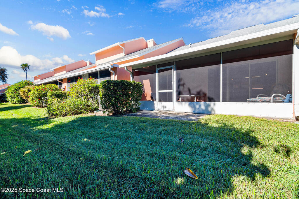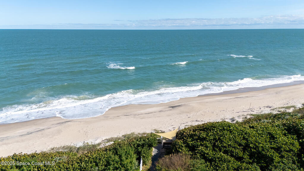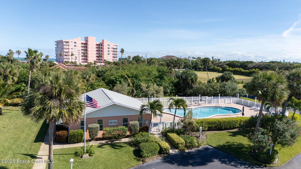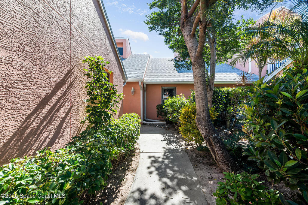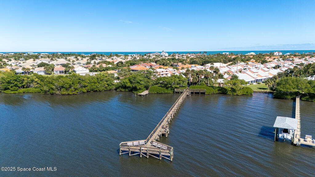 Perfectly positioned between the Atlantic Ocean & the Indian River, this desirable Lighthouse Cove home captures the essence of relaxed, upscale beachside living. Just steps from the shoreline, residents enjoy exclusive gated beach access & a private riverfront pier with a convenient boat ramp for boating, fishing, or soaking in unforgettable sunsets. This ONE-story unit features two spacious bedrooms, each with an ensuite bath & walk-in closet. The open floorplan boasts soaring ceilings & a bright kitchen with solid wood cabinetry, seamlessly connected to the inviting great room. A charming, screened porch offers tranquil wooded views, ideal for relaxing any time of day. Additional highlights include a 2020 HVAC, 2024 roof, one-car garage with extended driveway for parking up to three vehicles, & a heated community pool with clubhouse. The HOA covers exterior maintenance, roof, landscaping, irrigation, water, trash, plumbing, & structural insurance for low-maintenance coastal living.