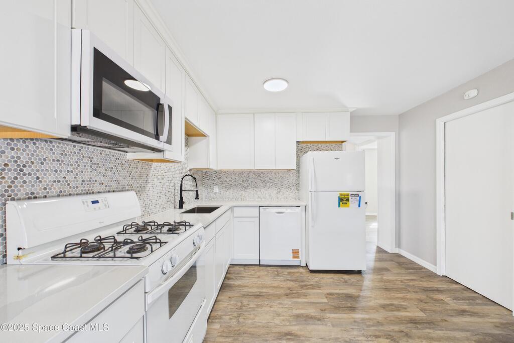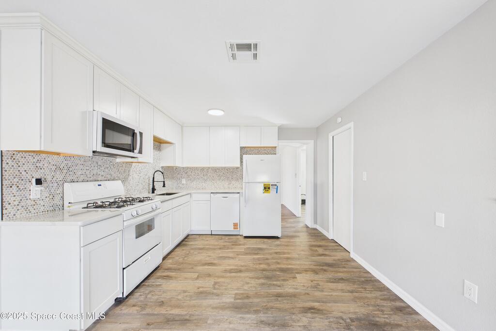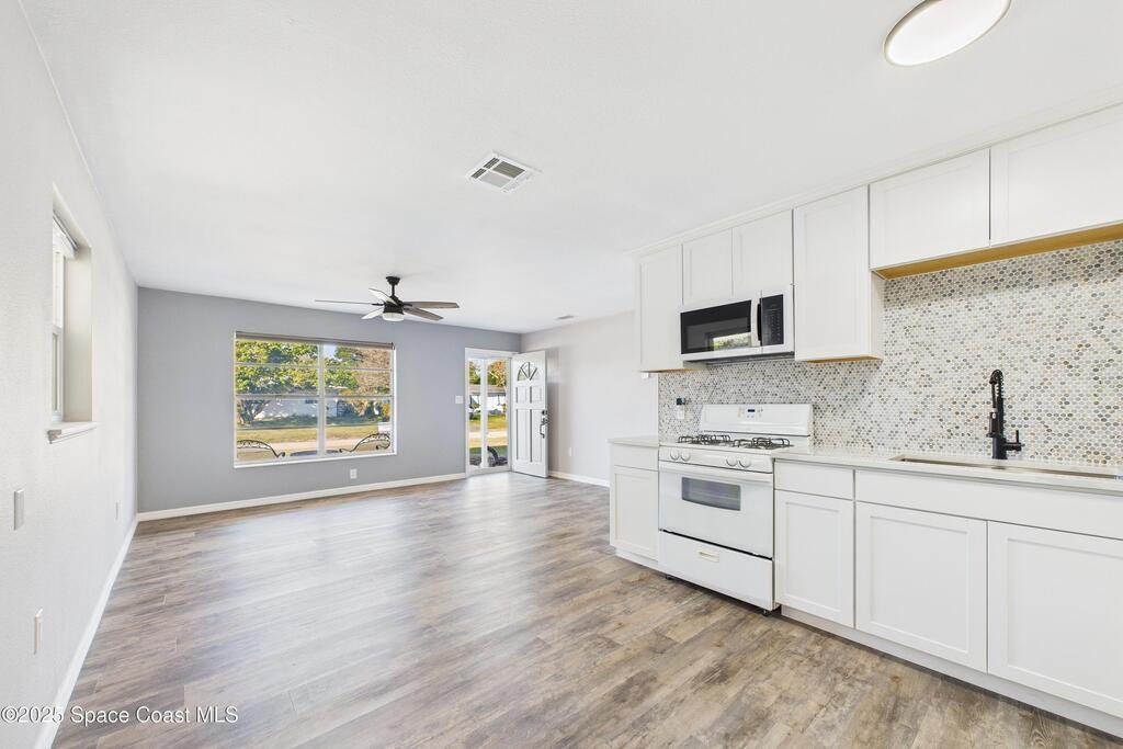 MUST SEE Perfection Plus in this Completely Remodeled Like New Home - Starting with Shaded Covered front Patio Through Front Storm Door to New Font Door into ALL New A/C, All New Ductwork Throughout, New Double Pane Vinyl Clad Windows, Whole House Luxury Vinyl Wood Look Flooring, New Refrigerator, New Dishwasher, New Microwave, New Washing Machine, Roof 2016, New Soffits 2025, All Pex Water Lines 2025, All New Kitchen Cabinets with Quartz Countertops, Gorgeous Tile Backsplash, Upgraded Stainless Steel Sink and Hardware Pull Out Faucet, All New Light Fixtures and Ceiling Fans Throughout, New Bathroom Cabinetry, Countertop, Mirror, Gorgeous Paint Color New Fresh Paint Inside and Out, New Fresh Landscaping, Floorplan has Additional Back Room For Office or Addtl TV Room Flex All Fenced Back Yard, 10x9 Shed in Back Yard, Covered Roof Screened Backyard Patio that opens to the Paver Backyard Open Air Patio, Exterior String Lighting For Added Night Entertaining Atmosphere, Walk to Schools