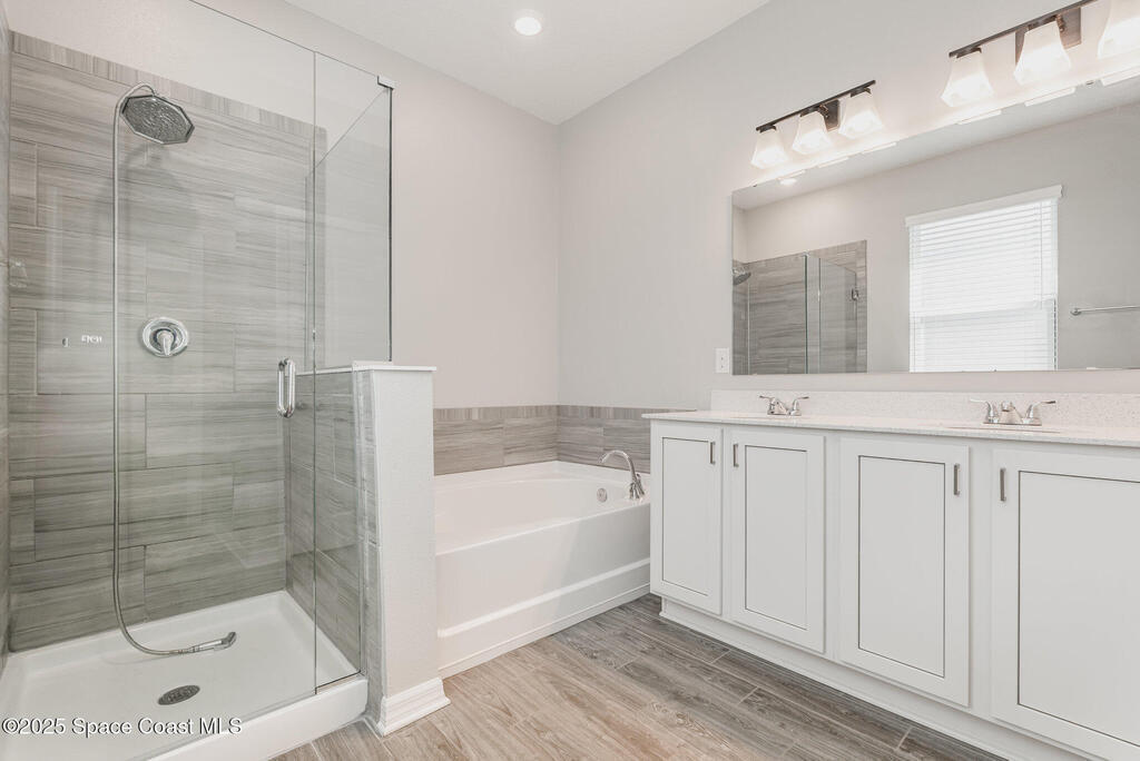 Tucked away on a quiet cul-de-sac street, this inviting, upgraded home sits on a serene conservation lot w/a fenced backyard overlooking the peaceful preserves. Wood-look tile flooring spans throughout. Spacious living/dining areas feature surround sound & French doors opening to a breezy covered lanai & an extended arbored patio stretching out to the sizable, sunny backyard. The showcase island kitchen shines w/a large breakfast bar, modern quartz counters, SS appliances, double ovens, a flat cooktop, tile backsplash & pendant lighting. Relax in a generous primary suite w/a walk-in closet & stylish bath w/dual sinks & separate tub/shower. Two additional bdrms flank a tub/shower bath, with the 4th bdrm nearby. Lawn care, washer & dryer included! Location can't be beat--close to schools & the bustling Palm Bay Rd. corridor offering tons of shopping, restaurants, everyday conveniences & access to I-95.