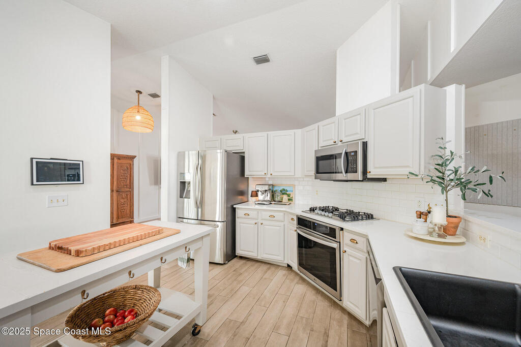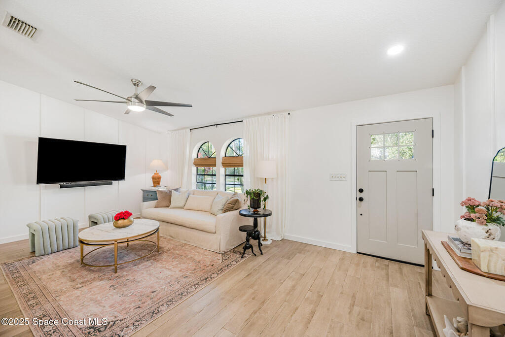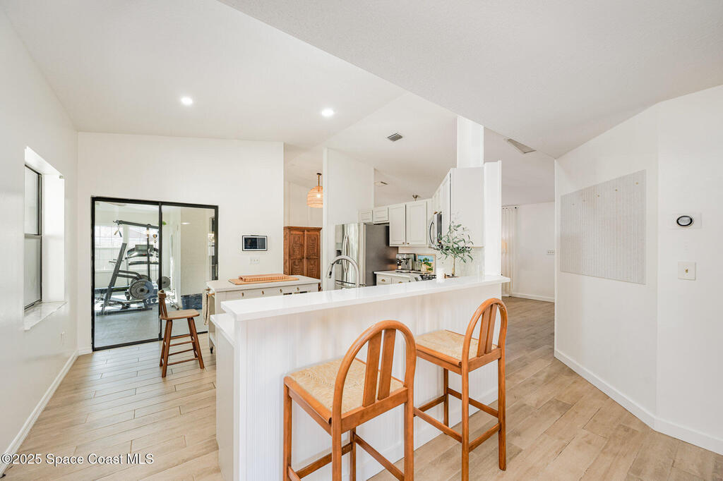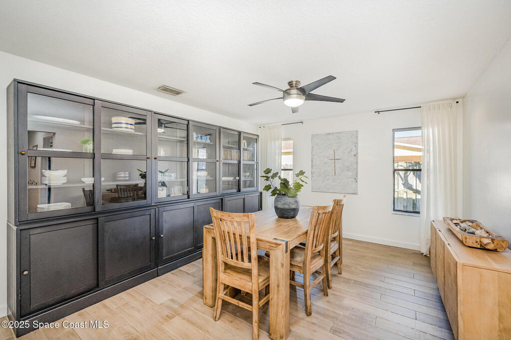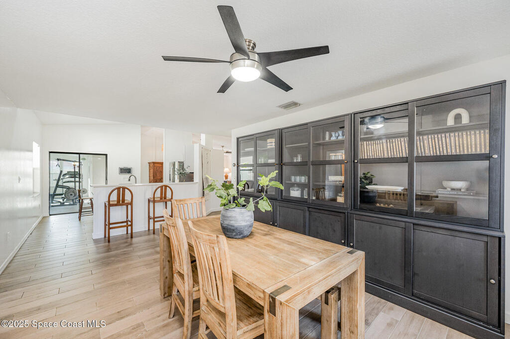 Enjoy relaxed Viera living in this inviting 3BR/2BA home located in the well-established neighborhood of Crane Creek. This home offers abundant natural light, open living spaces, and an updated kitchen with a gas stove and stainless steel appliances. Arched windows in the main living area and wood-look tile flooring add warmth and character throughout.Situated on a corner lot, the property features a fully fenced backyard with plenty of room to relax, play, or entertain, complete with mature trees and multiple outdoor seating areas. An enclosed flex room provides added space for hobbies, fitness, or work-from-home needs.Within Crane Creek, you'll appreciate quiet streets, nearby parks, golf, top-rated schools, and convenient access to shopping and dining.