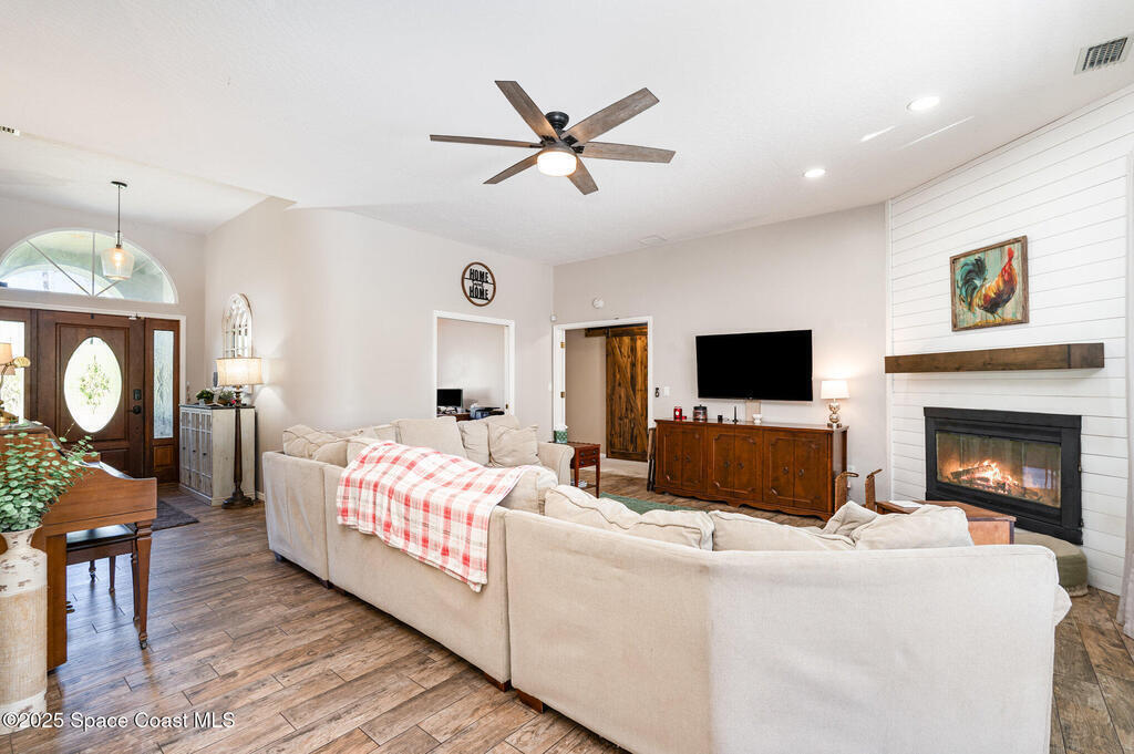 Welcome to your private Florida retreat on a full acre in one of Melbourne's most peaceful, sought-after areas. This updated 3-bed, 2-bath home with a large office (or 4th bedroom) blends modern comfort with quiet country living. An airy, open layout features wood-style tile, recessed lighting, and a warm aesthetic. The kitchen offers granite counters, stainless appliances, and ample storage, while both bathrooms feel spa-like with stylish tile and quartz.Major upgrades include a 2024 roof and AC, 2019 plumbing, 2021 water heater, 2025 pool pump, and a 50-amp EV charger (2025). Outside, enjoy an expansive screened pool deck, garden beds, and a chicken coop--your turnkey homestead. Experience serene country living just minutes from shopping, dining, beaches, and all Melbourne offers. This home delivers space, privacy, upgrades, and effortless indoor-outdoor living.
