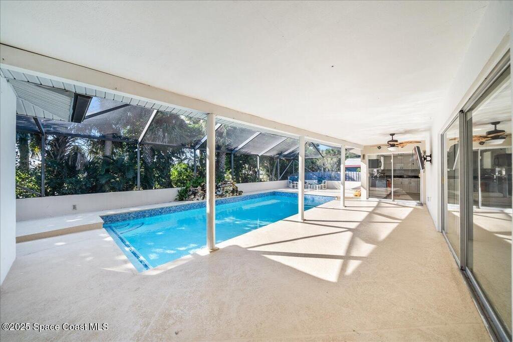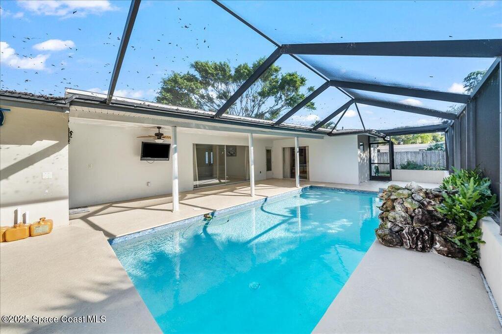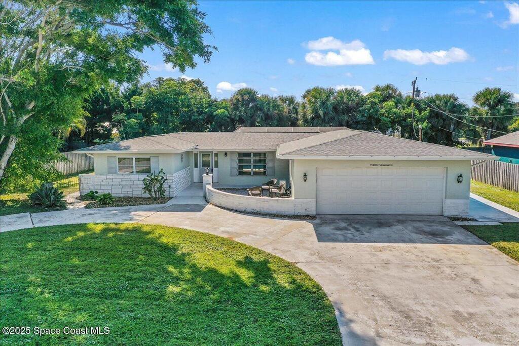 Discover this beautiful 3BD, 2BA, 2CG beachside pool home offering 1,618SF of comfortable coastal living on a generous .29-acre lot. Perfectly situated between the Atlantic Ocean & the Indian River in the charming town of Melbourne Beach. This property delivers the relaxed seaside lifestyle buyers are seeking. Step inside to an updated kitchen featuring granite counters, classic subway tile, and crisp white cabinetry--light, bright, and ready for entertaining. With no carpet throughout, the home feels clean, modern, and easy to maintain. Out back, your private oasis awaits. Enjoy a sparkling screened-in pool with a beautiful rock waterfall, ideal for quiet mornings, weekend gatherings, or cooling off after a day at the beach. A split A/C system in the garage provides comfort for hobbies, storage, or a workshop space.Major updates provide peace of mind: Roof 17'HVAC & Ductwork 22' Pool resurfaced 22', Pool pump/filter & tile 23' Hurricane-rated garage door 23' Incoming Water Line 23