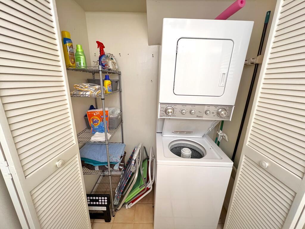Dishwasher , Electric Range , Microwave , Refrigerator , Washer/Dryer Stacked