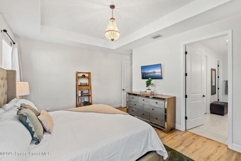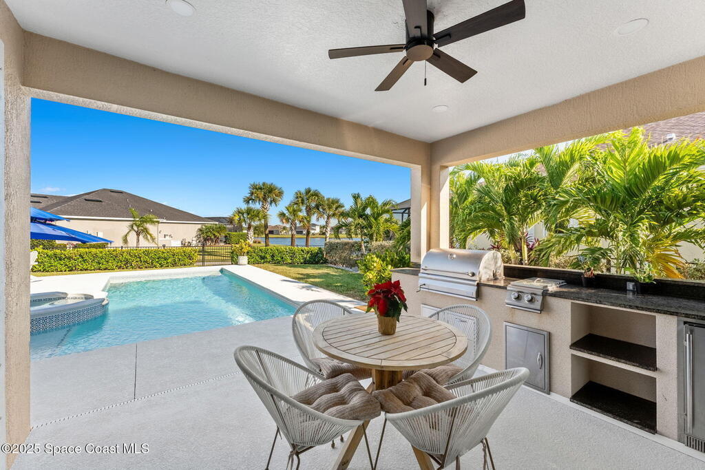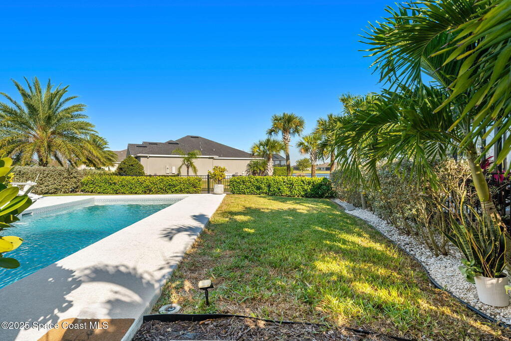 Hello to the Siesta Floor Plan!This impressive waterfront heated pool home is located in the highly desirable Trasona community of West Viera! Offering 4 bedrooms, 2 bathrooms, and a spacious 3-car garage across 2,154 sq. ft. of comfortable living space.Step outside to your private oasis featuring a 15x30 heated saltwater pool and spa, already equipped with footers for a future screen enclosure. Inside, enjoy a no carpet design: beautiful tile flooring highlights the main living areas and kitchen, while high quality LVP adds warmth and durability to all bedrooms.The fenced backyard provides peaceful water views, perfect for morning coffee or evening gatherings. The epoxy-floored 3 car garage is an upgrade lover's dream, complete with a 240V outlet for EV charging, mini-split cooling system, and additional insulation for comfort and efficiency.