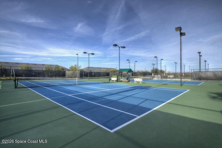 Discover Active 55+ Living in Heritage Isle's Premier Viera Community!This 2014-built end unit villa (1,537 sq ft, 2 beds + flex room, 2 baths, 1-car garage) is updated and ready for your next chapter. Quartz kitchen counters, SS appliances, large pantry. Master with custom closet built-ins. Plantation shutters on tinted windows, accordion hurricane protection. Crown molding accents main living spaces. Screened lanai flows to paver patio beside walking trails which are perfect for morning strolls!Live vibrantly with resort-style perks: state-of-the-art clubhouse, on-site restaurant, heated pool, fitness center, daily activities. Lawn care included !
