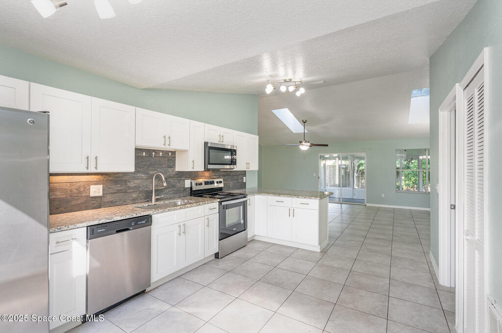 Welcome to this gorgeous, turnkey 3-bedroom, 2-bath home nestled in a fantastic neighborhood! Step inside to an inviting open-concept layout featuring a beautifully updated kitchen with stainless steel appliances, granite countertops, and a spacious design perfect for gatherings. Enjoy easy living with tile flooring throughout, split bedrooms, and updated bathrooms filled with modern touches and natural light from the skylight.This home offers peace of mind with an updated electrical panel, 1-year-old roof, 2-year-old AC, and hurricane shutters for added protection. The double-car garage with remote provides convenience, while the dedicated utility room includes a washer and dryer.Relax or entertain in the enclosed patio that opens to a large backyard filled with fruit trees--an ideal space for hosting friends and family or enjoying quiet evenings outdoors.Located close to great schools, shopping, and local conveniences, this home truly has it all.