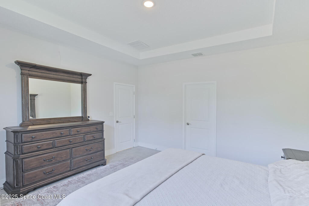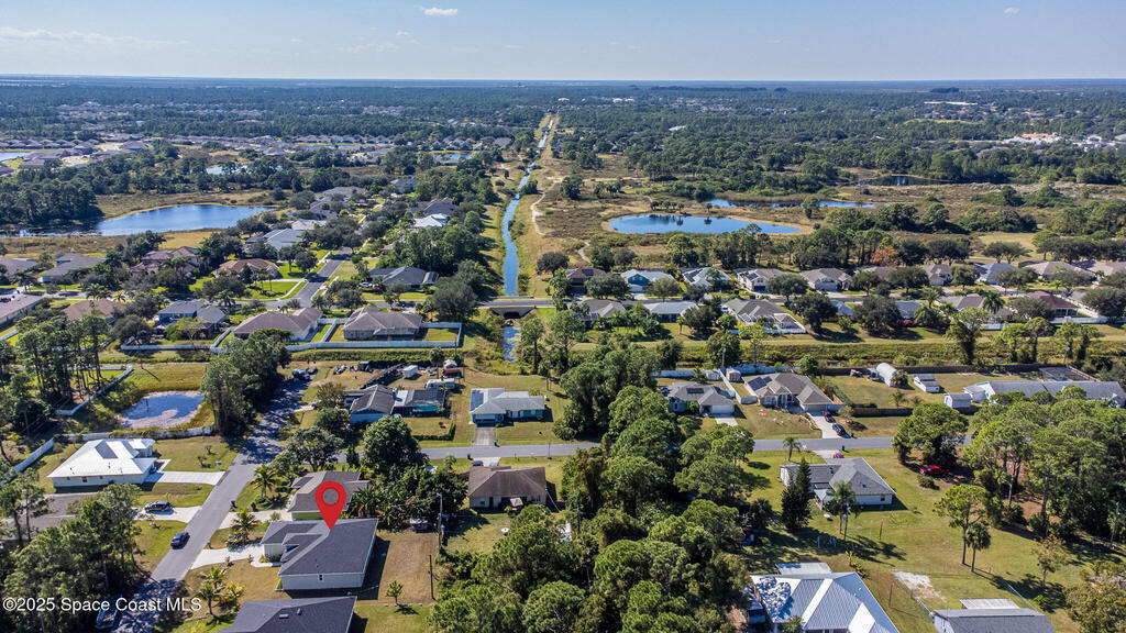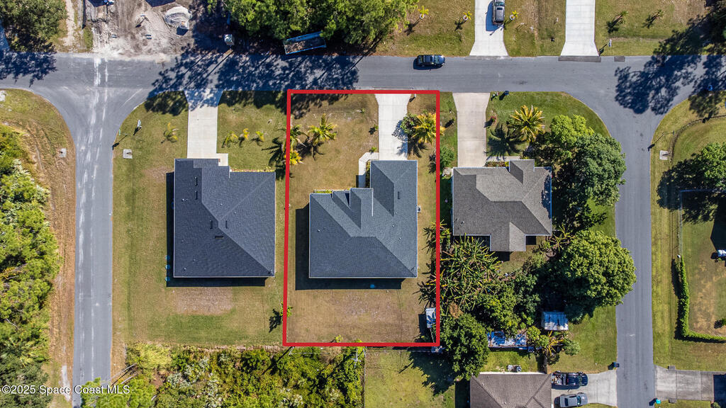 Experience modern Florida living in this brand-new 2023 construction, energy-efficient 3BR/2BA home with huge bonus room in a quiet, desirable area of Palm Bay. This high-quality build offers quartz countertops, luxury tile plank flooring, 42'' hardwood cabinets, LED lighting, and one of the best price-per-square-foot values in Palm Bay. Enjoy an open floor plan with 9'4'' ceilings, a tray ceiling in the master, Energy Star stainless appliances, a 15-16 SEER AC, hybrid water heater, Low-E double-pane windows, and spray foam insulation in exterior walls and the attic for exceptional efficiency and sound reduction. Additional features include a covered lanai, irrigation system, and rain gutters. The elevated lot offers great curb appeal, and the backyard features mature mango and coconut trees for a true tropical touch. Style, efficiency, and value come together in this beautiful home!