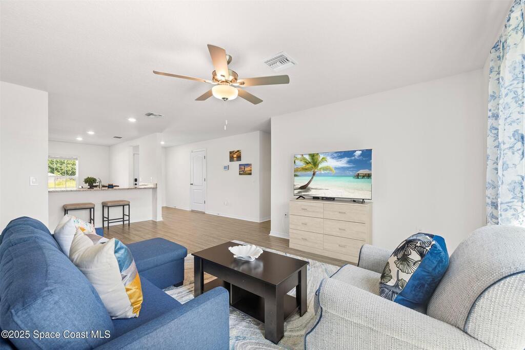 This beautifully appointed single family home is now available for sale and offers a perfect blend of comfort, style, and convenience. Situated on a spacious corner lot, the property comes fully furnished and features new energy efficient Whirlpool appliances, granite countertops, and an attached two-car garage, combining modern design with everyday functionality. The generous primary suite, inviting dining area. Located in the highly sought after Palm Bay area, residents will enjoy close proximity to golf courses, world-class beaches, and amenity rich parks, making this home an ideal choice for those seeking both relaxation and an active Florida lifestyle.
