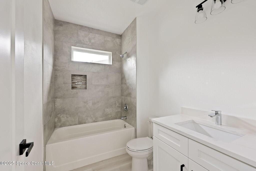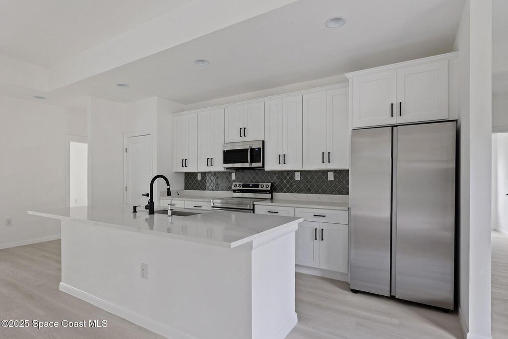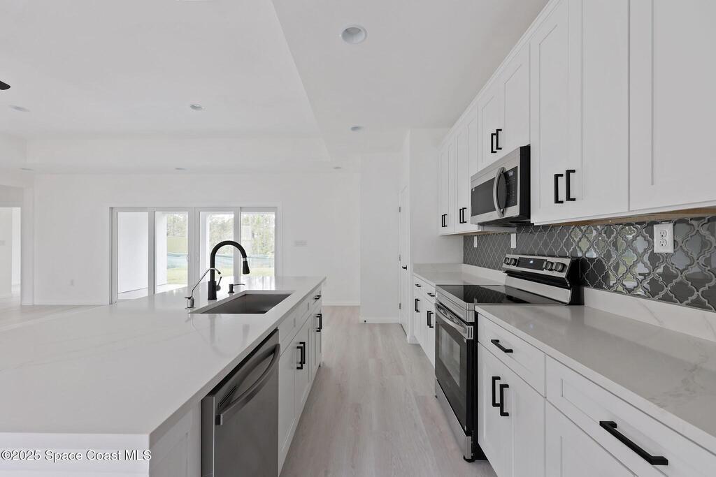 Step into this beautiful and modern home with high ceilings, offering 4 spacious bedrooms and 3 full bathrooms. The open floor plan features a great room perfect for relaxation and gatherings. The beautifully designed kitchen boasts quartz countertops, an island, and stainless steel appliances. The master suite offers a large walk-in closet and a master bathroom with white quartz double sinks and a wall-to-ceiling tiled shower, combining style and luxury. Enjoy peace of mind with impact windows, ensuring safety and tranquility.