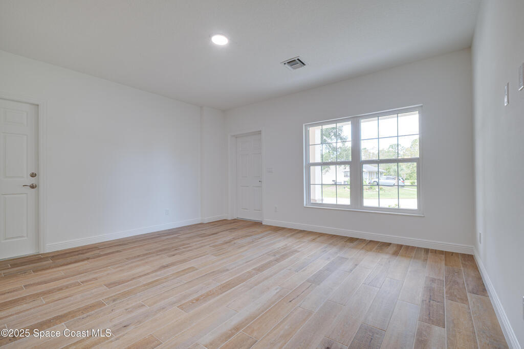 New construction with meaningful upgrades: CBS on BOTH floors, impact windows, city water, and an oversized lot. The primary suite is on the first floor with a soaking tub + walk-in shower offering luxury amenities, privacy & convenience. Upstairs, you'll find exceptionally large bedrooms (rare in Florida new construction). Features include wood-plank tile, a welcoming front porch, and a covered + screened back porch for true Florida living. Located in one of Palm Bay's fastest-growing areas, close to parks, schools, and daily essentials. Solid construction, smart layout--come see it in person.