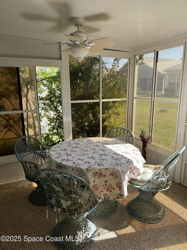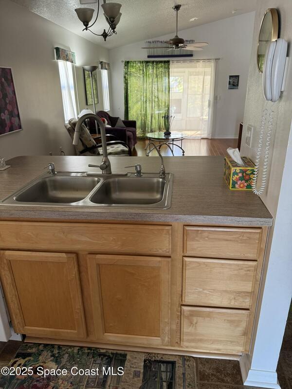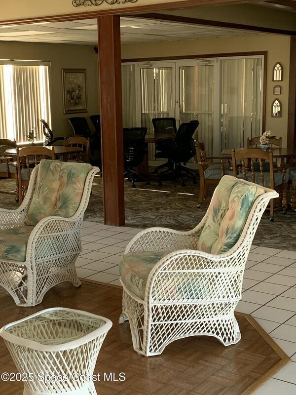 A SnowBirds Dream.This serene home features: 3 bedroom split plan, 2 baths, 2 car garage with views of the lake. Screened porch with vinyl windows and Window AC. From your front door, walk across the bridge over the lake to the club house with full kitchen and Fireplace, pool, indoor pool spa, killer Gym., Dry Sauna,Tennis Courts, and Shuffleboard, PLUS Free RV Parking. Many activities in this Gated Community. Dues are $112/month which includes lawn service. Don't miss this one. Priced at Appraisal. Copy in Office. This is priced to sell AS-IS. PLUS: New Roof 1-2022, Re-plumbed 8-2024, Inside AC (Air Handler) 2020