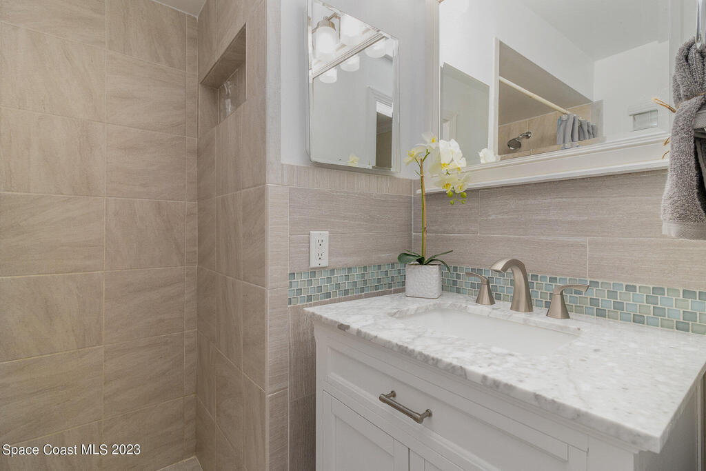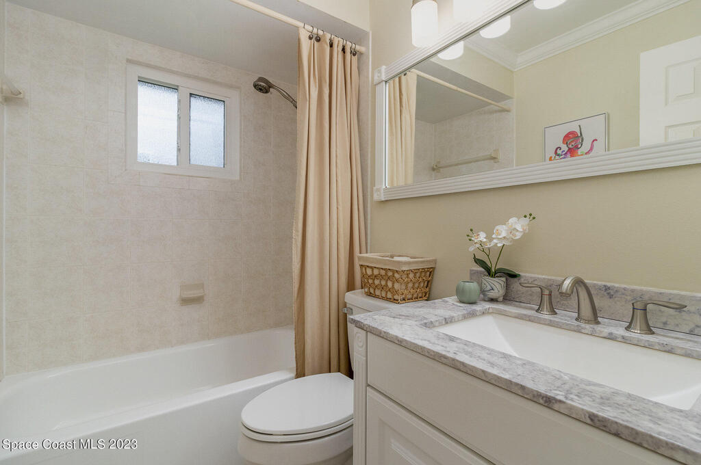 Beachside living awaits at this 3 bedroom, 2 bath home in the heart of Indian Harbour Beach! Newer updates featured in the kitchen include sleek quartz countertops with a complementing stone back splash, a stainless steel dishwasher, range and microwave. The bathrooms have been updated with newer vanities and quartz counters. Roof replaced in 2019, HVAC replaced in 2022, New Exterior Paint in 2023 , ALL windows are HURRICANE IMPACT and the garage door is HURRICANE RATED. Walking distance to Gleason park, local elementary school, restaurants, stores and the beautiful beach. Schedule your showing today!