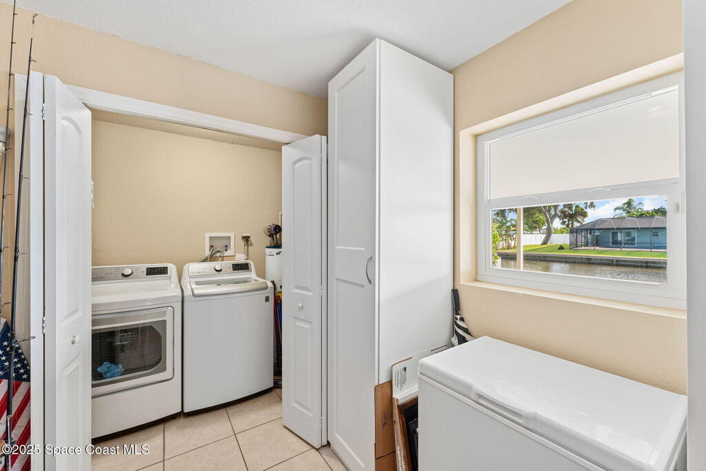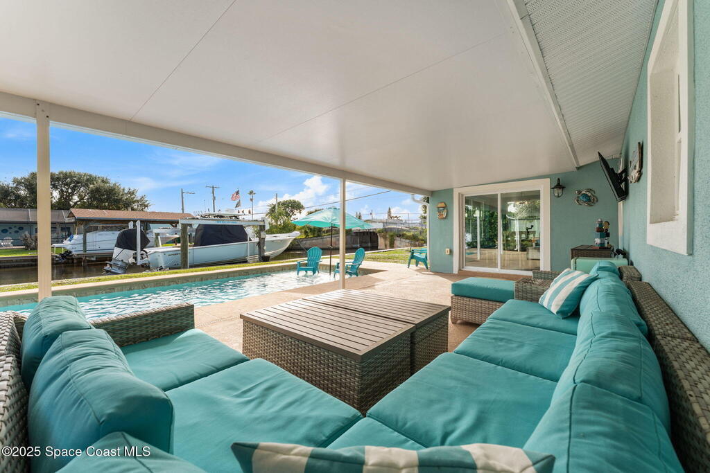 Boater's paradise found on this .24-acre waterfront retreat with direct Banana River access and no bridges to navigate. Positioned on a deep water canal with a 12,000 lb boatlift and a recent 113' vinyl seawall, this home is built for the coastal lifestyle. Inside, enjoy a thoughtfully updated kitchen, bathrooms, and living areas with bright, open spaces including an enclosed dining room with impact-rated windows and slider. Step outside to the newer saltwater pool, perfect for floating, fun, or post-boat relaxation, and entertain with ease on the expanded patio. The fenced backyard includes a shed, landscaping, and space for pets or outdoor games. Key upgrades include a 2023 metal roof, newer A/C, city sewer (no septic), and no HOA. With 4 bedrooms, 2 bathrooms, and seamless indoor-outdoor flow, this home offers effortless waterway living just a short 10-minute boat ride to the Canaveral Locks. A rare gem for boating, fishing, entertaining, and Florida sun lovers. See it today!