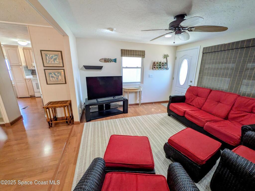 Looking for a sunny escape from brutal winters? This 55+ 2-bed, 2-bath in Leisure Living Estates is the perfect warm-weather retreat - you OWN THE LAND!This home has been well cared for, with major updates already done: a new standing-seam metal roof (2023), new skirting (2023), and a 2020 A/C system. Inside, you'll find no carpeting, updated bathrooms, and tons of built-in storage. The in-unit washer/dryer and the workshop w/ laundry sink & built-in workbench.Parking is a breeze with a carport plus extra driveway space. Even better, it's sold fully furnished, so you can move right in and start soaking up the Florida sunshine.The HOA is just $132/month and covers lawn care, landscaping, basic cable, and internet - a fantastic value.Cast a line from the community fishing pier. Pick fruit from your own banana tree. Walk across the street for deeded beach access, or stop by the community clubhouse for activities and gatherings.