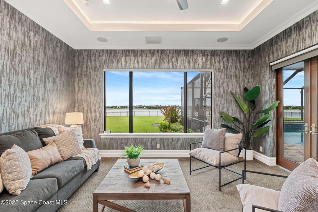 Commanding a premier .83-acre lakefront setting in the gated community of Adelaide, this custom 4-bedroom, 5-bath home offers an extraordinary rental opportunity w/ panoramic water views & refined living throughout. The layout flows effortlessly through a quartz-appointed kitchen, open media room, & gas-lit living spaces that blend seamlessly w/ the outdoors. Sliders retract to reveal a lanai designed for year-round enjoyment, complete w/ a summer kitchen, outdoor dining, multiple lounge zones, & a rooftop water feature that cascades into the spa beside a sculptural fire feature. A 4-car garage, new pool pump, & expansive patio add to the home's appeal. Residents enjoy access to Adelaide's premier amenities, including tennis courts, community dock, recreational lake, jogging paths, playground, & park spaces--perfect for morning runs, lakeside evenings, or weekend games at the court.
