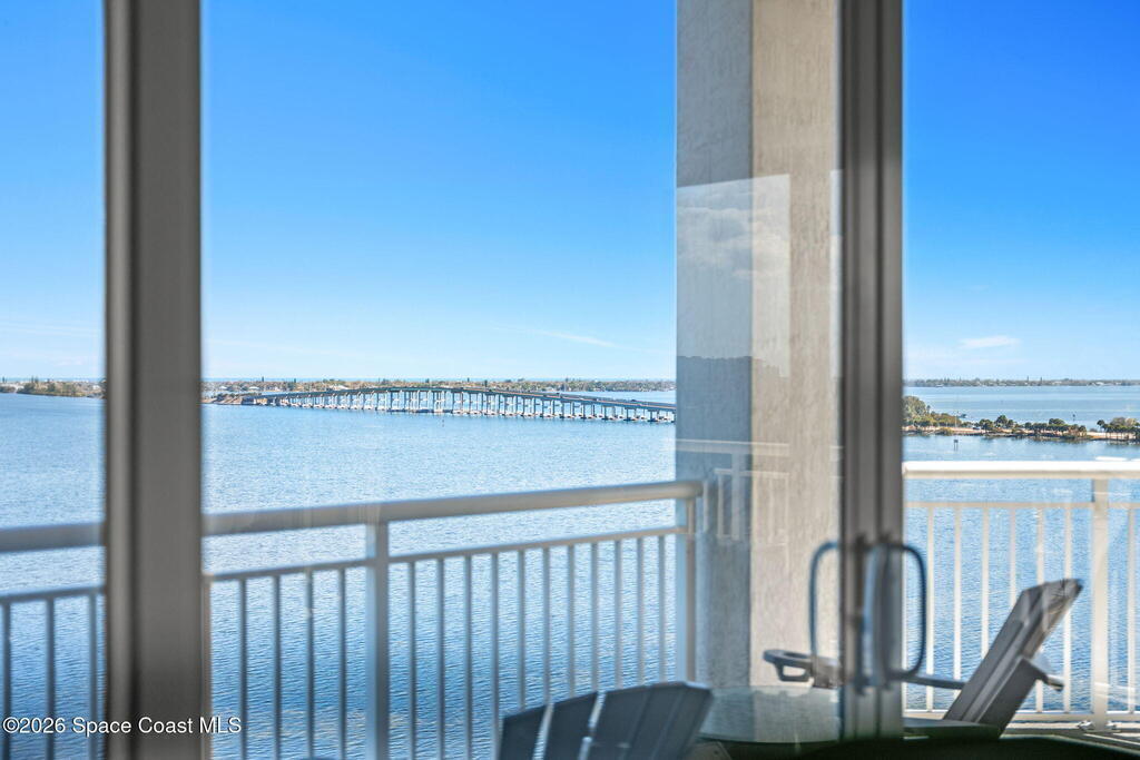 Experience elevated waterfront living in this stunning corner penthouse.This elegant home welcomes you with a beautiful hand laid marble floor highlighted by designer chandeliers lighting your way to a spacious open concept living area with floor to ceiling sliding doors.They showcase breathtaking views of the Indian River and rocket launches.The gourmet kitchen includes an induction cooktop and custom cabinets with pullout shelving.The master suite offers a private balcony, two walk-in closets, a shoe closet, spa bath, bidet and designer tile finishes. Two secondary en suite bedrooms, an office and art studio complete the living space.There are quartz countertops,electric window treatments,upgraded plumbing and light fixtures in every room.A see through fireplace separates the living and family areas. Sip your morning coffee watching beautiful sunrises or enjoy cocktails from your full bar with pull out shelves and its own refrigerator, freezer, wine cooler and nugget ice maker.