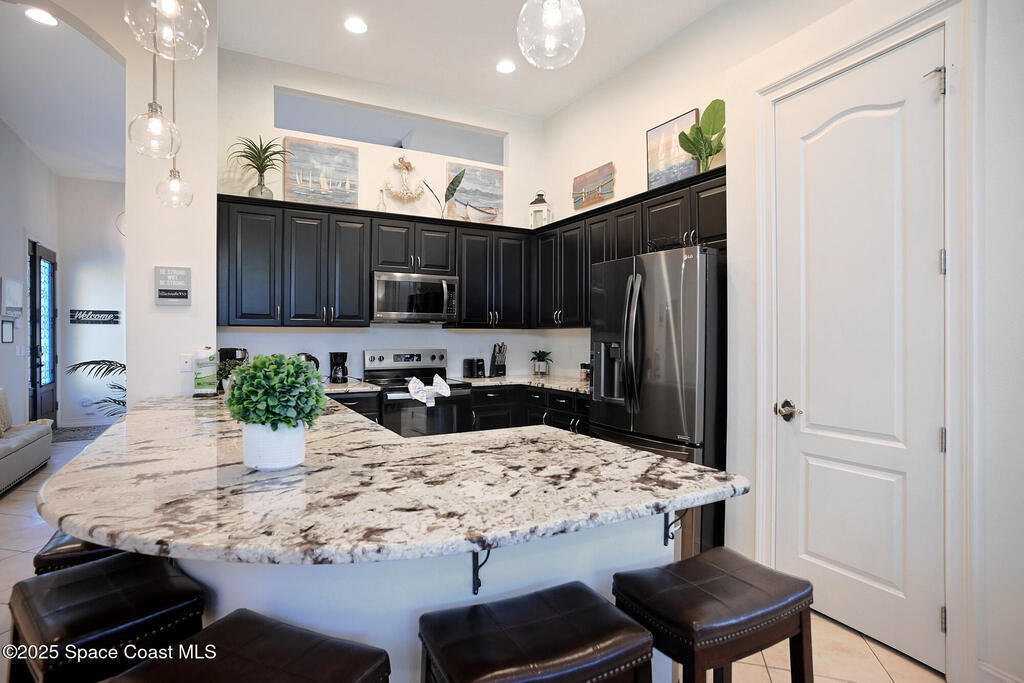 INVESTOR ALERT! AIR B N B this stunning, furnished beachside townhome that stands apart, marrying luxury design with everyday practicality. Highlights include a barrel tile roof, paver driveway, impact-rated windows/sliders. Outdoor entertaining area shines with pergolas, pavers, palm landscaping, and tasteful lighting and large pavered patio. Inside, the space exudes an interior designer's touch w/ lofty 12-foot ceilings, 8-foot doors and sliders, and a refined wrought-iron staircase. Transom windows bathe rooms in natural light, underscoring rich wood and tile flooring. A granite wet bar pairs with a chef's kitchen featuring soft-close cabinetry, granite counters, and S/S appliances, a breakfast bar adds casual seating. First floor owner's retreat opens to pergola patio and features a tray ceiling, plus a primary, spa like bath w/garden tub & separate shower. HOA covers roof replacement + exterior building maintenance, lawn and pool care. Beach access just a short drive away.