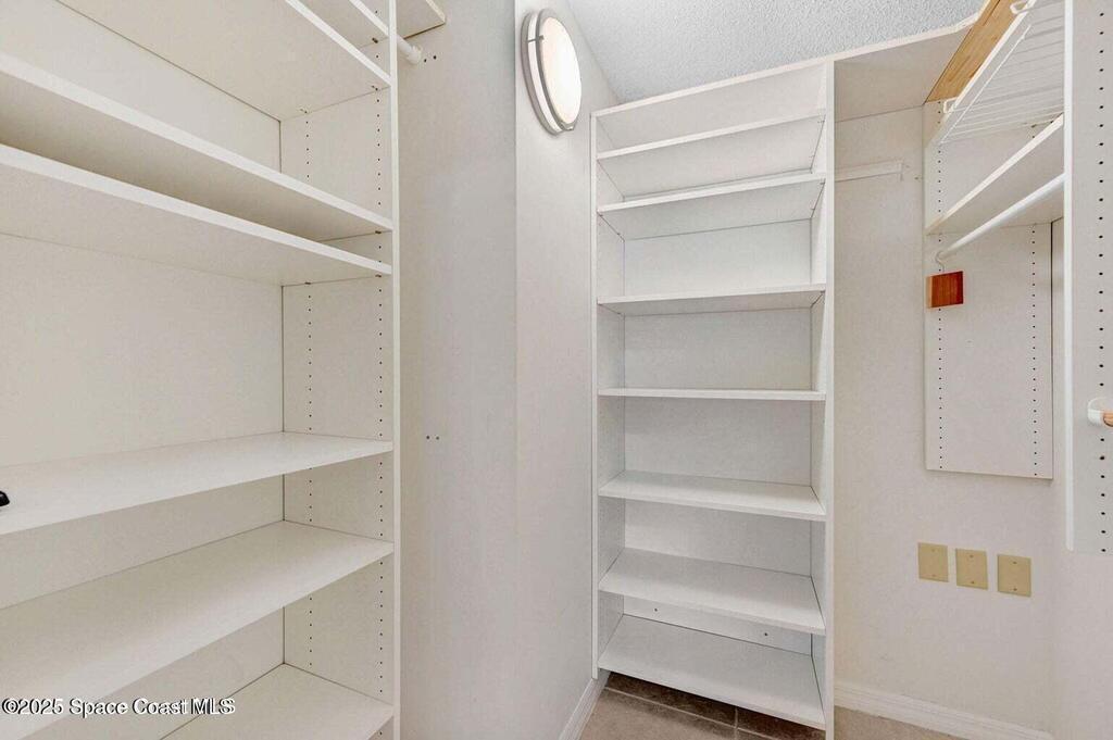 Welcome to this open and airy second floor end unit which is one of the most spacious and inviting floor plans in the entire complex. Originally designed as a three bedroom, two bath, this thoughtfully reimagined two bedroom, two bath layout offers an expansive living area, being ideal for entertaining or simply enjoying the extra breathing room. Step inside to find an interior that has been tastefully updated with east facing plantation shutters, cool and easy-to-maintain tile flooring throughout and a modern kitchen featuring sleek S/S appliances, gleaming granite counter tops and elegant white cabinetry. Both bathrooms carry the same clean and classic fixtures and cabinetry, creating a cohesive and refined look throughout the home. The stackable W/D are tucked away for easy access. This end unit offers natural light flooding in from multiple angles, offering a sense of openness and tranquility. Community pool/spa. 1 car carport and additional assigned parking. See addit. remarks.