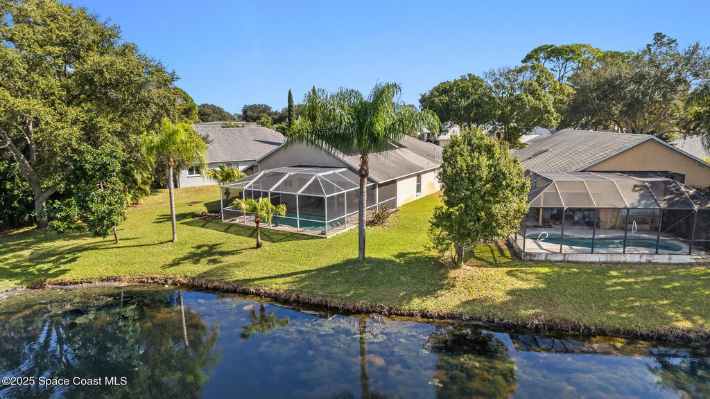Discover this solid concrete block, waterfront, pool home in a highly convenient & desirable Melbourne neighborhood. Offering tranquil lakefront living with breathtaking sunset views from the expansive screened pool lanai, this well-appointed residence seamlessly blends comfort with functionality. The updated kitchen shines with quartz countertops, rich oak cabinetry, and stainless steel appliances, while natural gas services the range, oven, and water heater for efficiency and performance. Step outside to a nature-rich, backyard oasis ideal for enjoying peaceful evenings by the water. Minutes to shopping, dining, great schools, area businesses and white sand beaches, this home truly delivers a refined waterfront lifestyle. Priced to sell!