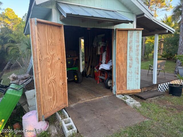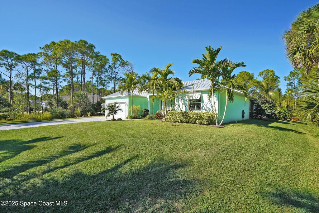 Fantastic pool home set in a private tropical setting. This well-maintained 3BR split plan features a spacious primary suite with his-and-hers walk-in closets, a large bathroom with garden tub, and a separate walk-in shower. Home offers energy-efficient double-pane windows and custom plantation shutters. Metal Roof for years of maintenance free living.Upgraded water system includes a peroxide injection filtration system plus reverse osmosis at the kitchen sink and refrigerator. Kitchen features granite counter tops and all appliances.Enjoy the screened back porch overlooking a screened pool with waterfall. Additional outdoor features include a small wood deck, separate portico, custom equipment shed with deck and fire pit, and RV/boat parking area. One-acre lot with mature tropical landscaping and a full sprinkler system. Paver driveway completes this private tropical oasis.