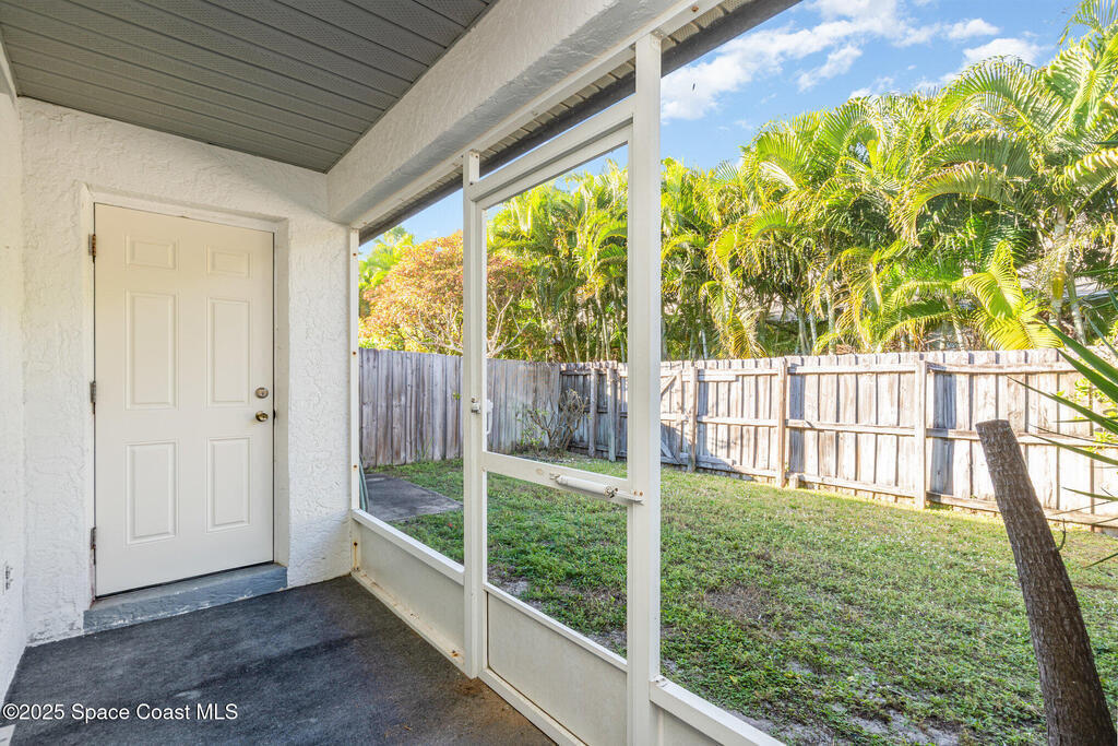 This 2-bedroom, 2-bathroom, single-story townhome offers the perfect opportunity to enjoy a relaxed coastal lifestyle. Located close to shopping, restaurants, and entertainment, you can watch rocket launches from the beach, stroll to local restaurants or explore the nearby Eau Gallie Arts District, just across the Indian River. The primary bedroom features a hurricane-impact slider leading to a screened-in porch --the perfect spot to unwind and enjoy ocean breezes. Additional highlights include a privacy fenced backyard, one-car garage with a hurricane-rated garage door, and low HOA fees. While the home is in original condition and ready for updates, its unbeatable location less than a mile from the beach and strong potential make it a fantastic investment or renovation opportunity. Roof (2018), HVAC (2012), and Water Heater (2022).