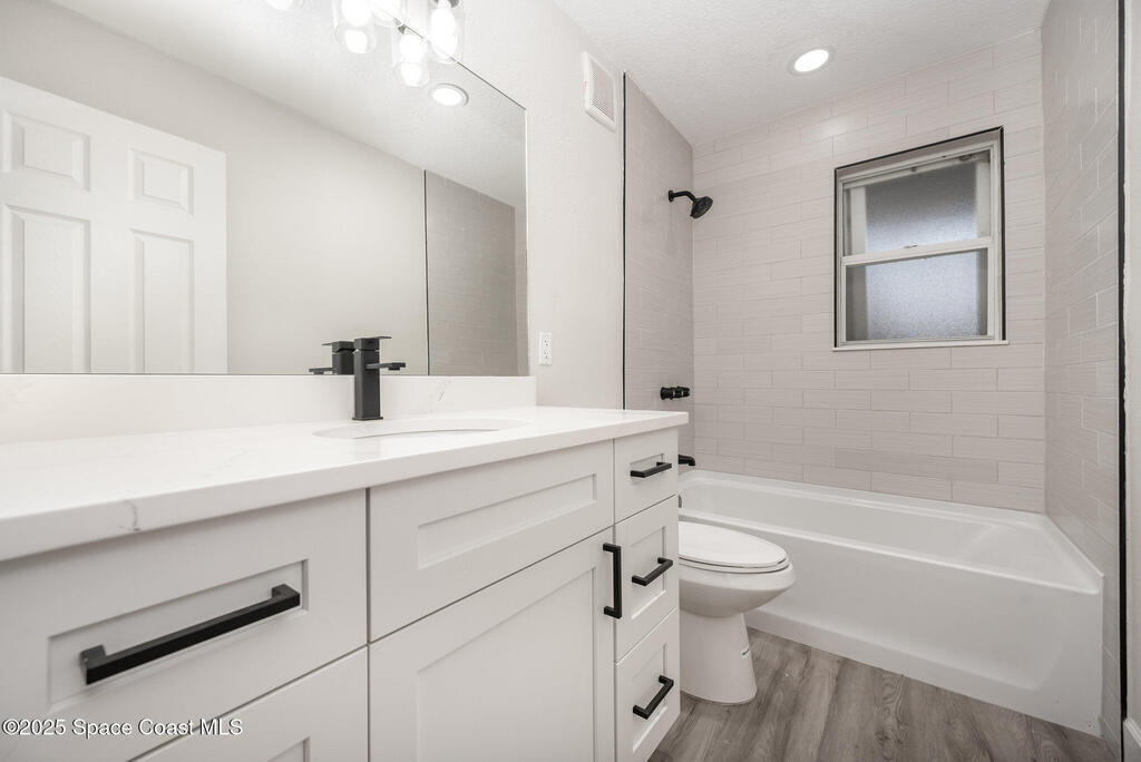 This beautifully renovated pool home is ideal for a large or extended family. This property also has short term rental possibilities! Completely updated and freshly painted, it offers true move-in-ready condition. Upgrades include a brand-new roof, four new sliders, two new air conditioners, two new water heaters, two new circuit panels, Frigidaire stainless steel appliances, new kitchen cabinets with quartz countertops, matching bathroom vanities, two new tubs, and a renovated shower. Additional improvements include new ceiling fans, recessed lighting, and new laminate flooring with new carpet in all bedrooms. The home features a split plan with two bedrooms on one side and three on the other, centered around a beautiful kitchen open to the living room. The pool is accessible from the primary bedroom, fifth bedroom, and living room. Laundry and an additional 1/2 bath are conveniently located on the pool deck. A separate driveway and entrance on Bouganvillea Dr. adds extra flexibility