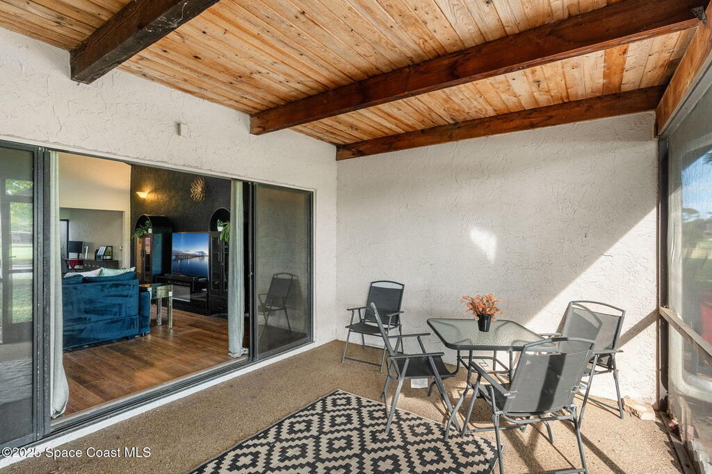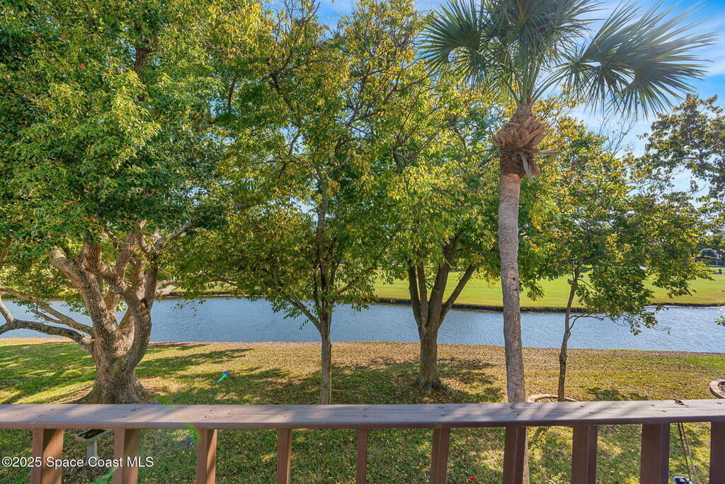 Spectacular lake, golf course, and tree-lined views! A welcoming paver courtyard leads into this bright 2-bed, 3-bath home, filled with natural light, vaulted ceilings, and a 4-panel sliding door that opens to the patio and stunning vistas. The refreshed kitchen features granite counters, single-tub sink, subway tile, newer SS appliances, and space for a cozy breakfast table. Enjoy peace of mind with a 2023 A/C and 2022 roof. The spacious primary suite offers panoramic views, a private slider to the deck, a large walk-in closet, dual sinks, and separate tub and shower. The beautiful community includes a large pool and private path to Suntree Country Club. Ideal location close to restaurants, shopping, schools, river, beaches, and I-95.