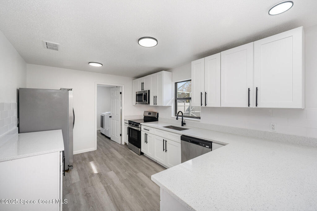 Beautifully updated 4-bedroom, 2-bath home in Rockledge, perfectly positioned on a spacious corner lot with a refreshing in-ground pool ideal for Florida living. This 1,705 sq. ft. concrete block residence offers a bright, open layout with modern finishes throughout. Enjoy a fully updated kitchen with new cabinetry, countertops, and 2024 appliances, along with updated bathrooms that bring a clean, contemporary feel. Major improvements include a 2024 roof and 2024 A/C, providing excellent efficiency and peace of mind for years to come. The fenced backyard creates a private retreat for entertaining or relaxing poolside. With four true bedrooms, natural light, and tasteful updates, this home blends comfort and functionality. Conveniently located near top-rated schools, parks, shopping, dining, and easy access to I-95, the beaches, and Orlando attractions, this Rockledge gem delivers the best of Space Coast living. Bank approval is required, allow 3-4 months for closing.