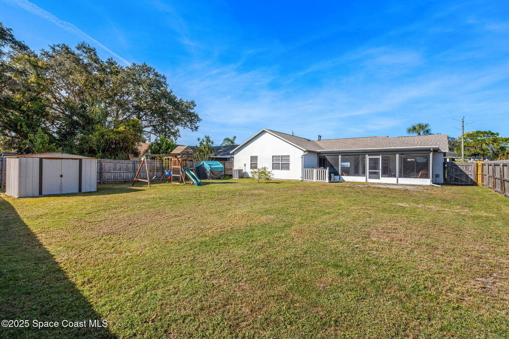 Located in Melbourne's established Lansing Ridge community, this updated Florida home blends tropical charm with everyday comfort. With 3 bedrooms, 2 bathrooms, and a bright, open layout, it's perfect for anyone who enjoys year-round indoor-outdoor living. Cathedral ceilings in the main living areas create a spacious, airy feel, while the kitchen features granite counters, stainless appliances, and a layout that keeps you connected to the heart of the home. Newer laminate flooring runs throughout. The primary suite includes an updated bath and a slider leading to the huge screened porch. The fully fenced .24-acre backyard is ideal for kids, pets, or gardening, with a shed and play structure that can stay. Enjoy peace of mind with a brand new Nov 2025 roof, newer A/C, generator connection, and city water and sewer. Located minutes from schools, parks, and shopping, this home is move-in ready and full of Florida appeal. Only 15 minutes to the beach and 60 minutes to Orlando!