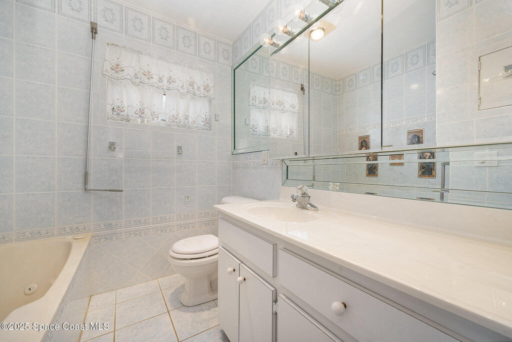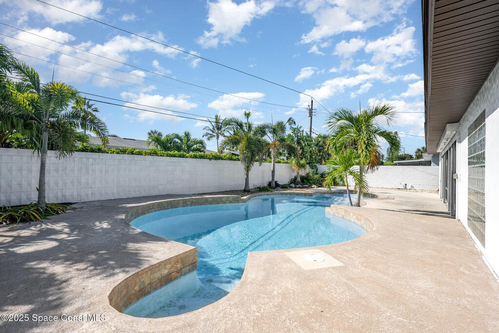 ONE-OWNER LEGACY HOME | MASSIVE 50-FT POOL | DUAL ENSUITES This 2-bed/3-bath pool home (easily converted back to a 3-bed) is situated in the Cresthaven subdivision of Satellite Beach, directly across A1A from Pelican Beach Park. The showstopper is a sparkling 50-ft pool (max depth of 8.5 ft) surrounded by a landscaped deck and concrete block privacy fence. A full pool bath for convenience. Roll-down shutters (partially electric) give you total peace of mind. Interior features include foyer, an open, light-filled layout with distinct living and dining areas. The kitchen features granite countertops, double ovens, and large pass thru window to the pool patio. The 1-car garage is under air and included in the living square footage ideal for a workshop, gym, or climate-controlled storage. Lovingly maintained by one owner since construction, this solid concrete block residence is a blank canvas ready for your modern vision or move-in ready for those who appreciate retro charm. See More