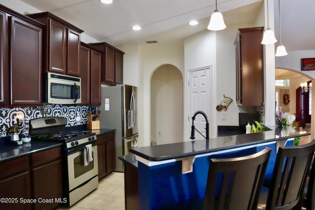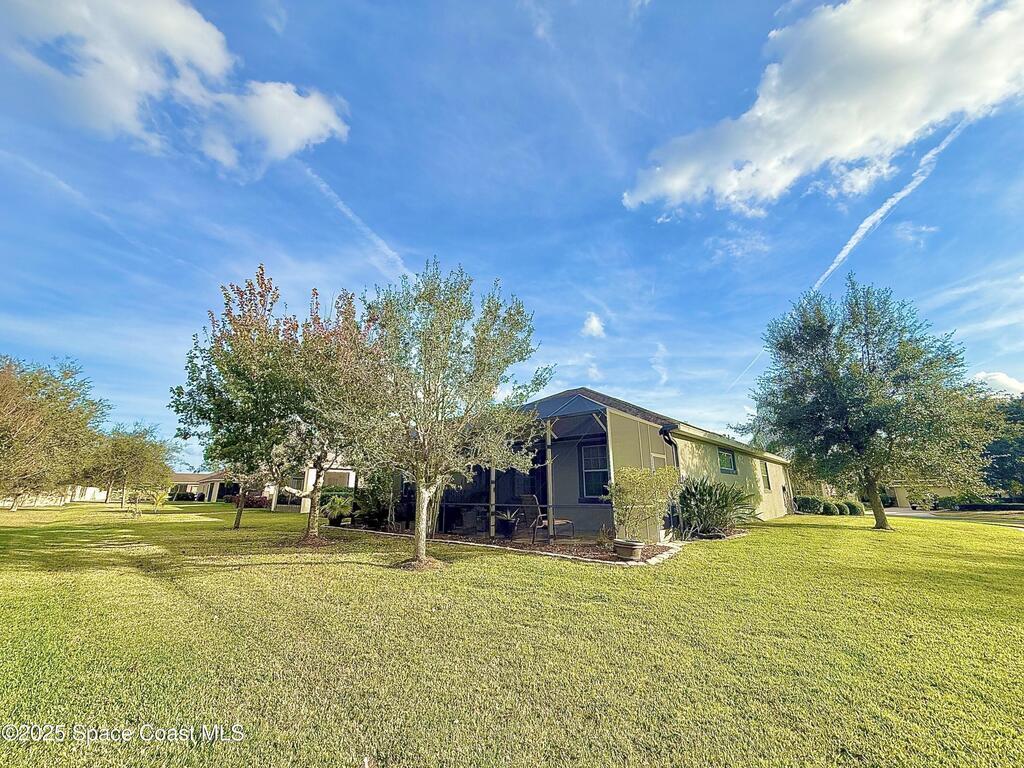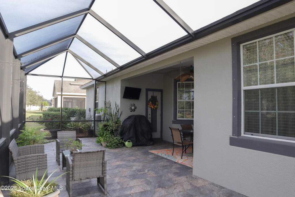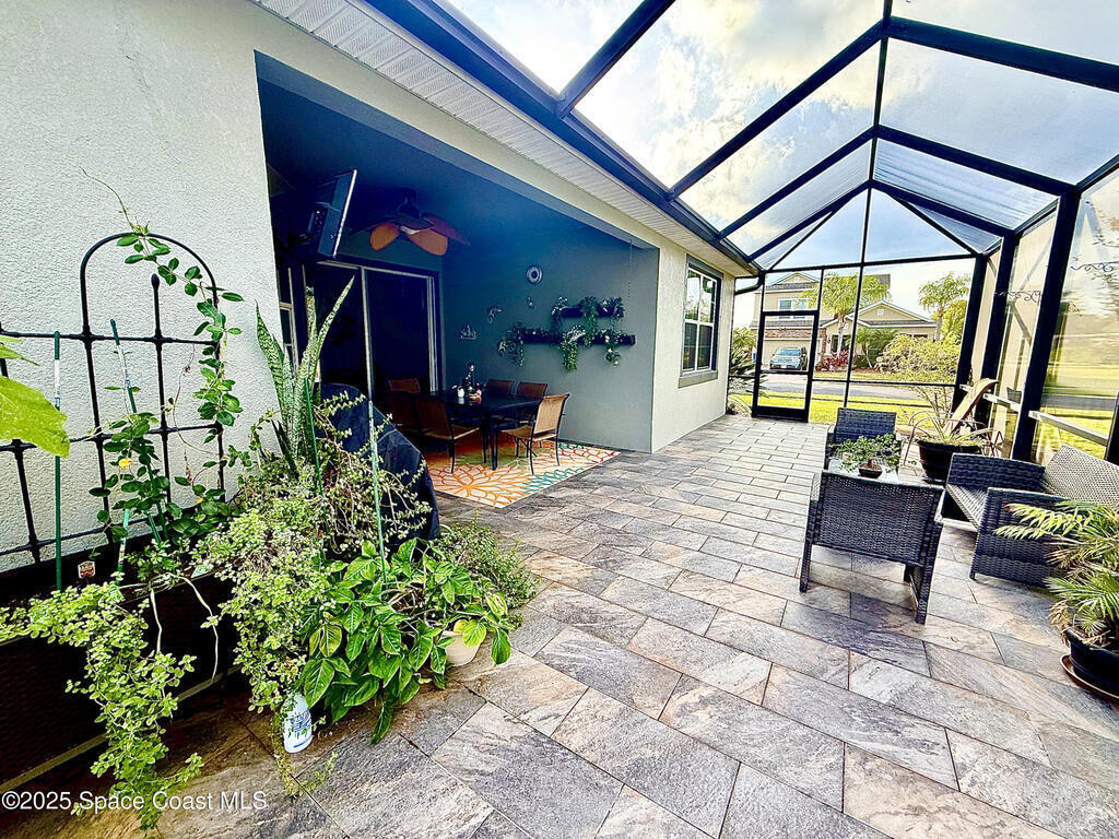 Beautifully maintained 4-bedroom + flex space home on an oversized corner lot in Holly Trace at Bayside Lakes. Enjoy 9-foot ceilings, tray ceilings in the dining room and primary suite, and tile flooring throughout, with vinyl wood flooring in the primary suite. The versatile flex space is ideal for a home office, entertainment room, wine room, or can be modified into a 5th bedroom.The upgraded kitchen features Silestone countertops, LG appliances, a propane gas range, pot filler faucet, and a hands-free kitchen faucet. All appliances convey, including washer and dryer in the separate laundry room. Custom window treatments and upgraded light fixtures add a polished finish.Enjoy Florida living on the screened porch and tile patio, with space for an herb garden. Additional features include an oversized garage, sprinkler system, hurricane shutters, and NEW roof. Neighborhood amenities feature 2 pools, 2 tennis courts, playground, & clubhouse.