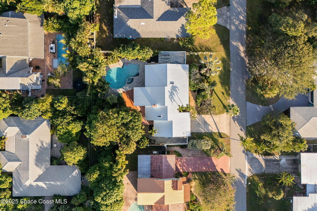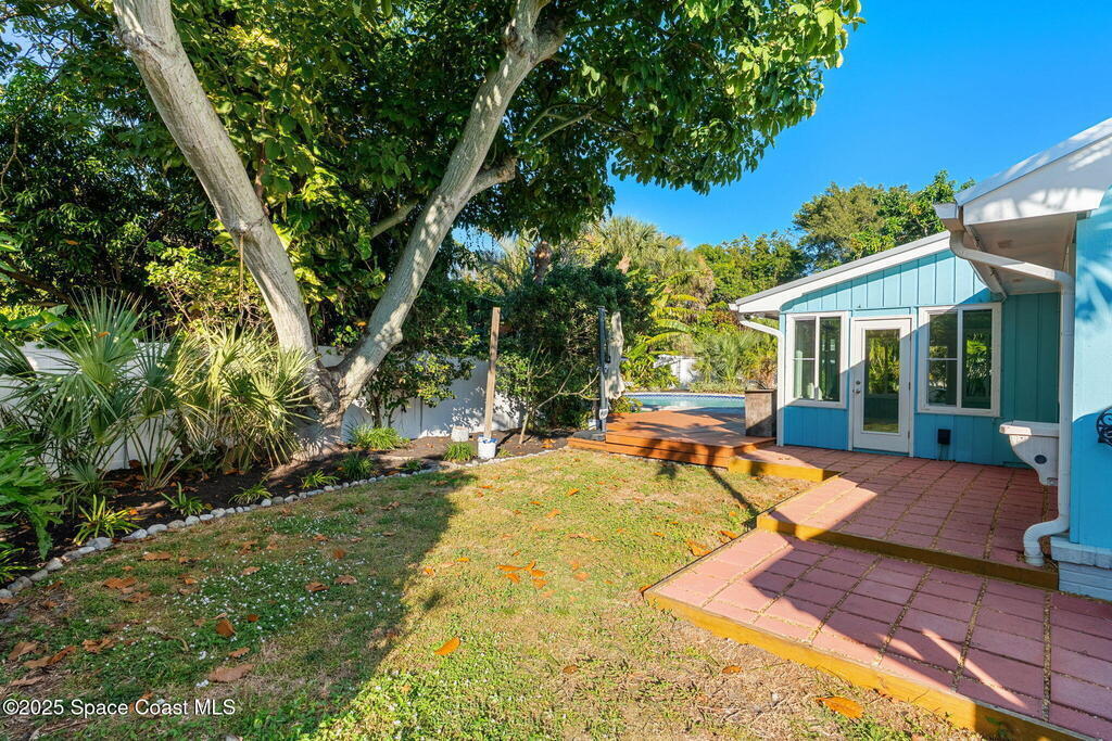 Nestled South of Fifth Ave and just one block from the beach, this blissful beachside cottage features a brand-new standing seam metal roof, impact windows, and a private backyard pool retreat surrounded by lush, tropical landscaping. Inside, charm fills every corner with a double-sided fireplace connecting the formal dining and living rooms, with wainscoting accents in the dining, and the living crowned by a vaulted tongue-and-groove ceiling and warm wood beams. The cozy kitchen offers wood cabinetry, quartz countertops, a double oven, and a built-in breakfast nook. Take your coffee in the Florida room, or relax in your fully fenced private paradise with a poolside deck perfect for unwinding. An indoor laundry room, half bath, and ample storage embody life's simple luxuries and everyday convenience, while the generous, oversized garage is ideal for storing surfboards, beach gear, a golf cart and more. Minutes to dining, shopping, the beach and Orlando Park for easy coastal living.
