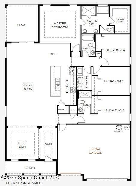 Pre-Construction. To Be Built. The Harmony A charming covered front porch sets the tone, leading into a welcoming foyer highlighted by soaring 9'4'' ceilings. Just off the entry, a versatile Flex/Den with double French doors provides an ideal space for a home office, study, or quiet retreat.A private guest suite, complete with its own ensuite bath featuring a beautifully tiled shower, delivers exceptional comfort--perfect for overnight visitors or multi-generational living.The kitchen serves as the heart of the home, showcasing a large island, granite surfaces, and an adjacent dining area. The oversized great room flows effortlessly from this space, creating an open, airy setting ideal for everyday living and seamless entertaining. Step onto the covered lanai, where serene views provide the perfect backdrop for year-round relaxation.
