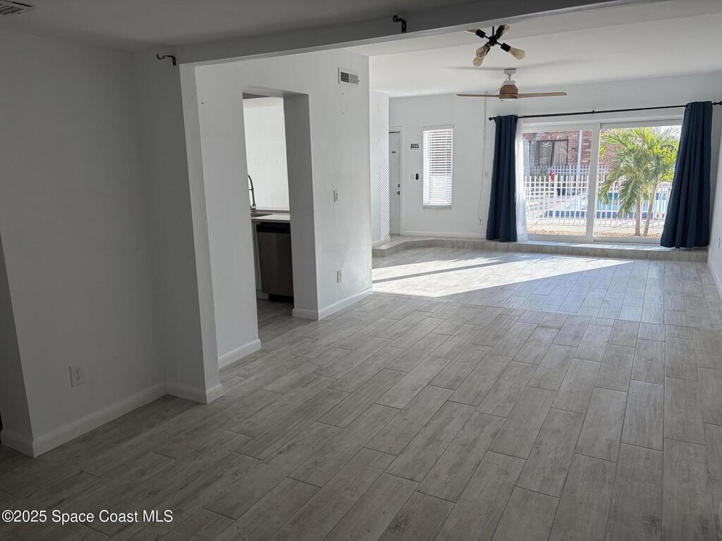 This unit is exceptionally spacious and has been fully remodeled, featuring new tile flooring throughout, updated vanities and fixtures in the bathrooms, and a brand-new kitchen with new cabinets, appliances, and quartz countertops. The location is unbeatable: - It is an oceanfront complex with direct beach access and steps from the Pier. - The unit is right next to the pool, offering a great view from the patio window and giving the pool an almost private feel. Additional amenities include a washer and dryer in the unit, and a highly desirable one-car attached garage--a true rarity in Cocoa Beach. The tenant is responsible for electricity; all other utilities, including water and Internet, are paid for by the landlord.