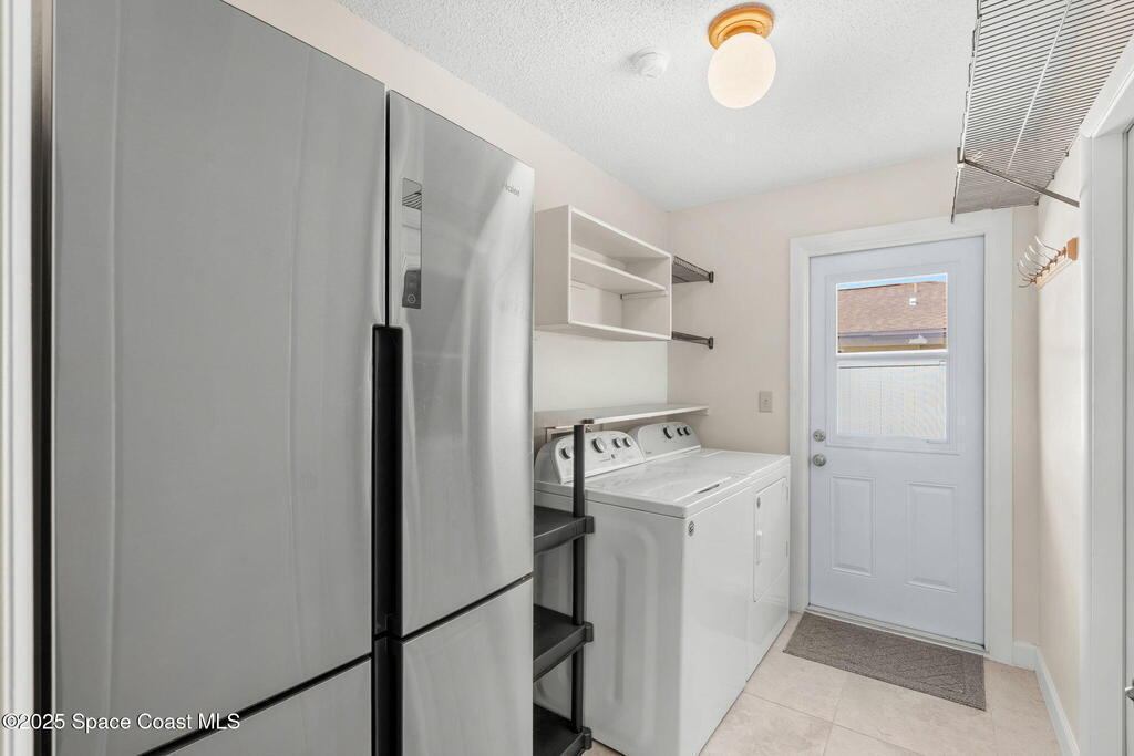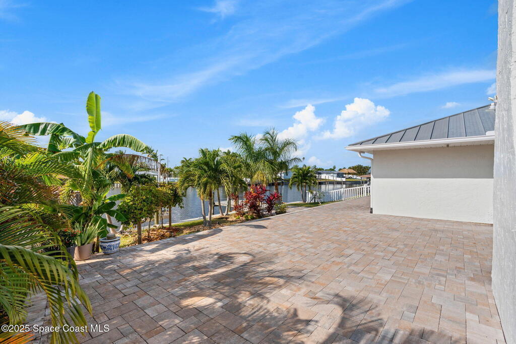Tucked at the end of a quiet cul-de-sac at the very back of Diana Shores, this canalfront home delivers unbeatable down-the-water views, dreamy sunsets, and direct access to Sykes Creek. Set on one of the widest canals with plenty of room to turn a boat, the home is loaded with upgrades: 8 hurricane-rated windows, whole-house accordion shutters (2022), impact garage door (2023), and an 82' vinyl seawall with composite dock, jet ski lift, and kayak platform (2021). Entertain outdoors on the pavered patio, with a prewired and reinforced middle pad for a hot tub. Inside, enjoy a bright, open split floorplan with travertine and LVP flooring, a remodeled kitchen with gas range, indoor laundry, wood-burning fireplace--and no cast iron plumbing. A metal roof, newer electric panels, tankless gas water heater, privacy fencing, and high-end water filtration system round out the list. Tucked away yet close to 528 and the beach, this is where everyday comfort meets the Space Coast lifestyle.