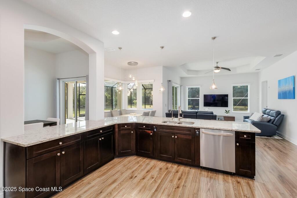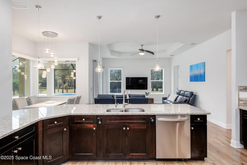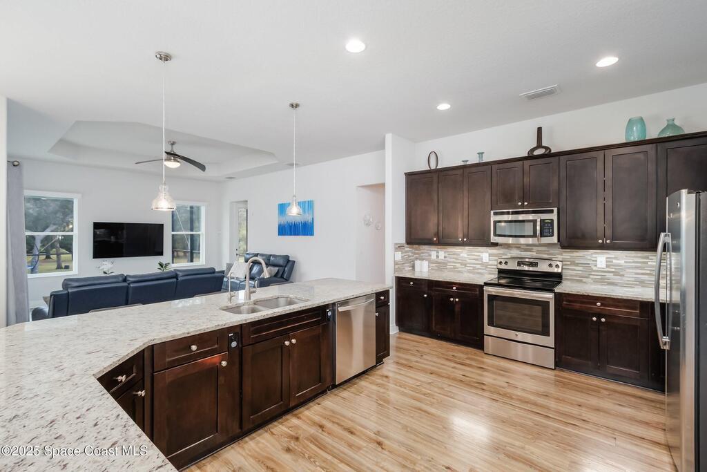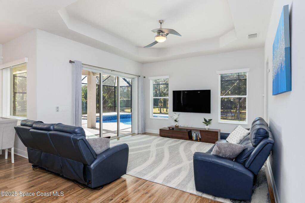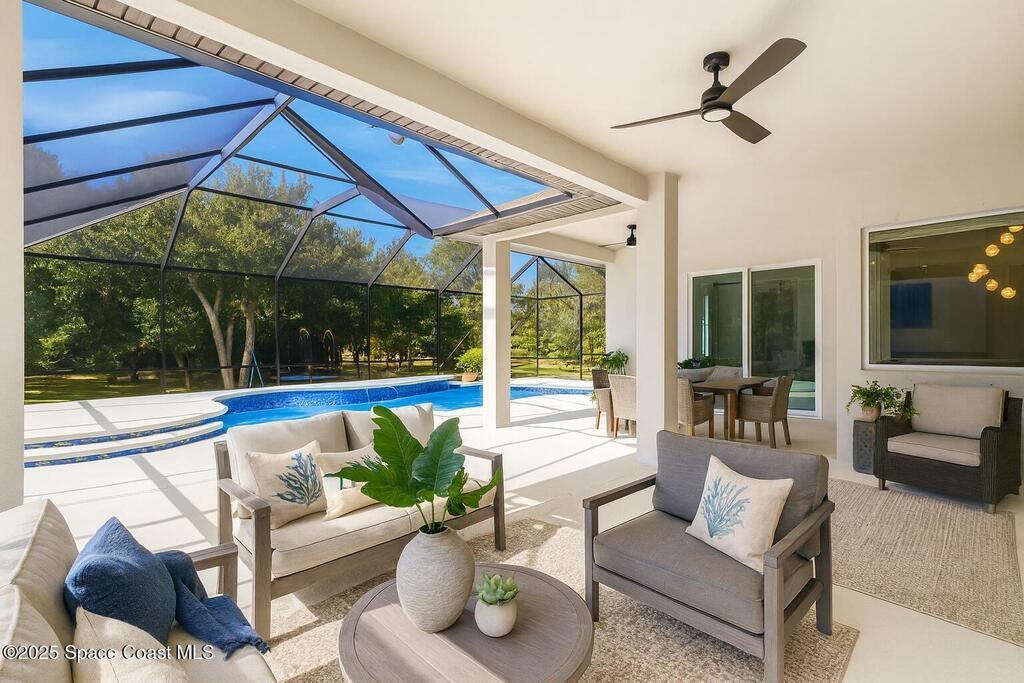 Stunning luxury home in the prestigious Oakmont Preserve, offering incredible value on nearly 1.4 acres of quiet, park-like land. This beautifully updated Lifestyle built home features soaring 15 ft ceilings, a triple-split floor plan, custom lighting, tray ceilings, rounded corners, and no carpet throughout. The large kitchen includes GE appliances, 42'' cabinets with crown, granite counters, and reverse osmosis. The new heated, saltwater pool showcases a pebble finish, waterfall feature, spacious screened enclosure, and covered patio. Enjoy a variety of tropical fruit trees throughout the property as well.Additional highlights: hurricane shutters, security system with cameras, retractable blinds, garden-style primary bath, 3-car side-entry garage with built-ins, epoxy flooring, EV charger, gutters, 2025 exterior paint, and a irrigation system that spans the property. An exceptional blend of privacy, space, and luxury.
