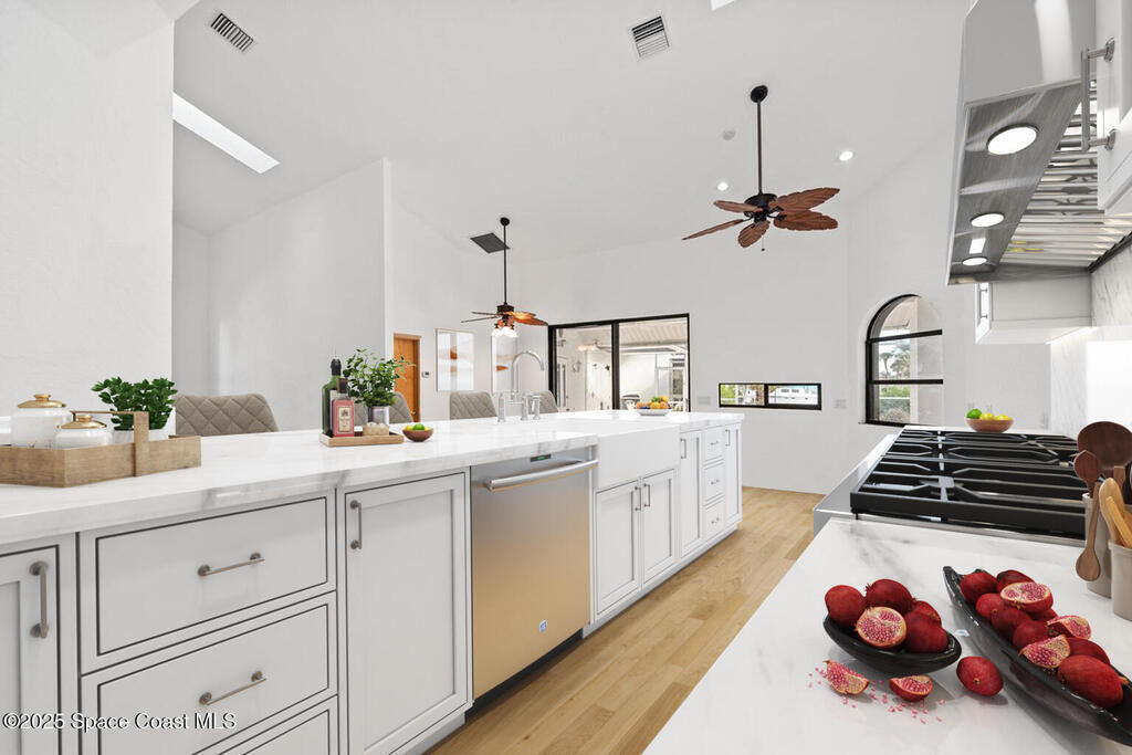 Ceiling Fan(s) , His and Hers Closets , Primary Bathroom -Tub with Separate Shower , Primary Downstairs , Skylight(s) , Split Bedrooms , Vaulted Ceiling(s) , Walk-In Closet(s) , Wet Bar