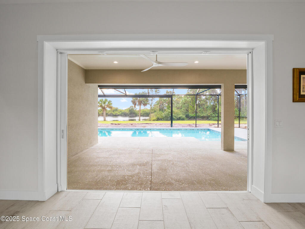 Welcome to your private country estate, set on over an acre of lush, manicured land and lined with mature trees for complete privacy and peace. From the moment you enter, your gaze is immediately drawn to the panoramic views of the sparkling new pool and the tranquil pond beyond--a showstopping scene that sets the tone for the entire home.A stately paver entrance welcomes you into an interior designed for both elegance and effortless entertaining. Throughout the home, you'll find high-end ceramic tile flooring, offering durability, luxury, and a seamless visual flow from room to room.The soaring cathedral ceilings and abundant natural light create an inviting atmosphere, but it's the chef's kitchen that truly steals the show. Featuring rich dark wood cabinetry, sleek quartz countertops, and a sink with serene views of the surrounding nature, this kitchen blends form and function beautifully.