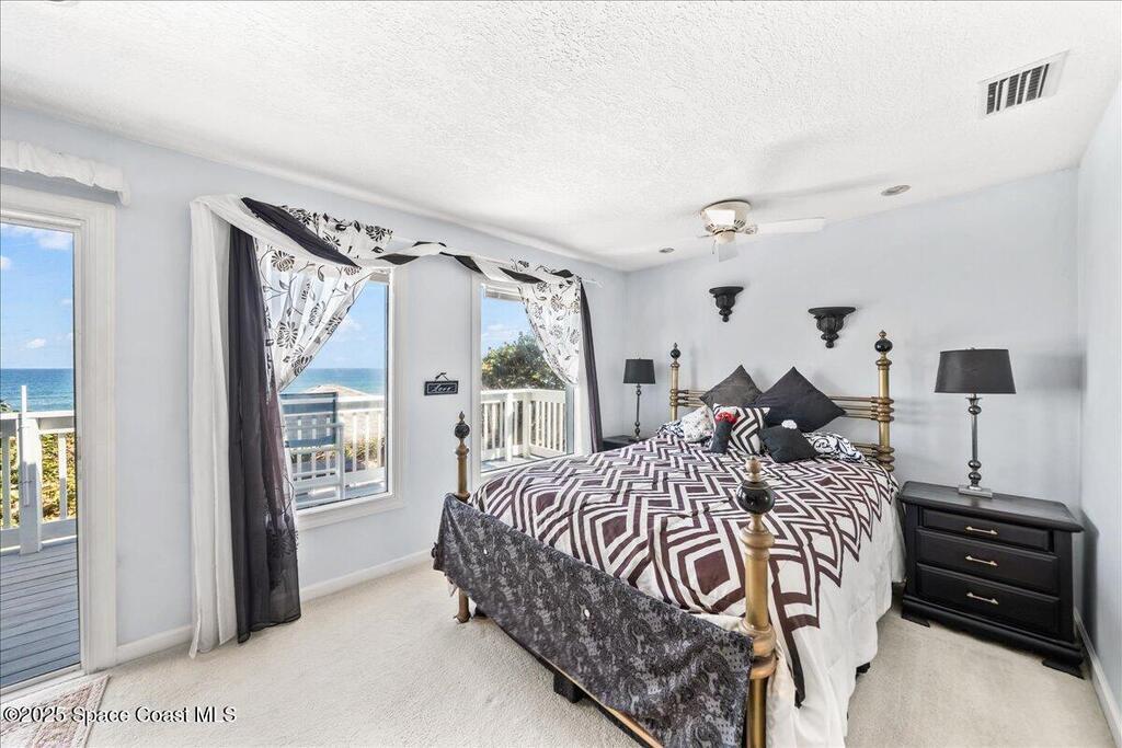 Exceptional oceanfront property offering a private coastal lifestyle on nearly .78 acres. Set well back from A1A the deep front yard creates a quiet retreat with space for a future pool, expanded outdoor living or guest amenities. A wide approach and ample parking area provide smooth access for family and guests. Along the oceanfront enjoy 48' of shoreline framed by mature landscaping for natural privacy far from public beach access and perfect for peaceful mornings beach walks and relaxed seaside living. A grandfathered oceanside gazebo with hot tub sits just steps from the dunes offering a unique spot for gatherings unwinding under the stars or watching spectacular space shuttle launches. The second-story oceanside deck provides elevated views and refreshing breezes ideal for sunrise coffee or evening cocktails. A 273 sq ft workshop with a separate entrance adds flexibility for hobbies or storage. A rare chance to enjoy space serenity and the true oceanfront lifestyle.